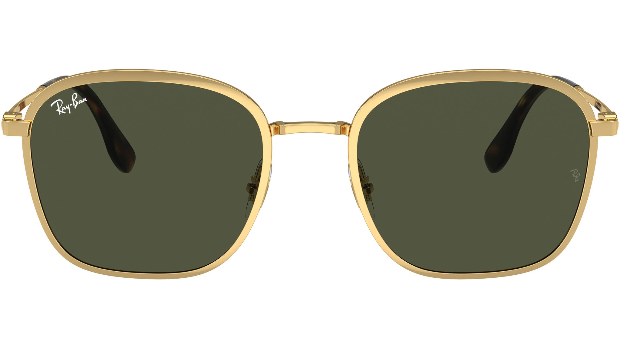 Ray-Ban square sungasses model RB3720 from Ray-Ban Performance eyewear line, color code 001/31 gold metal frame with green lens.