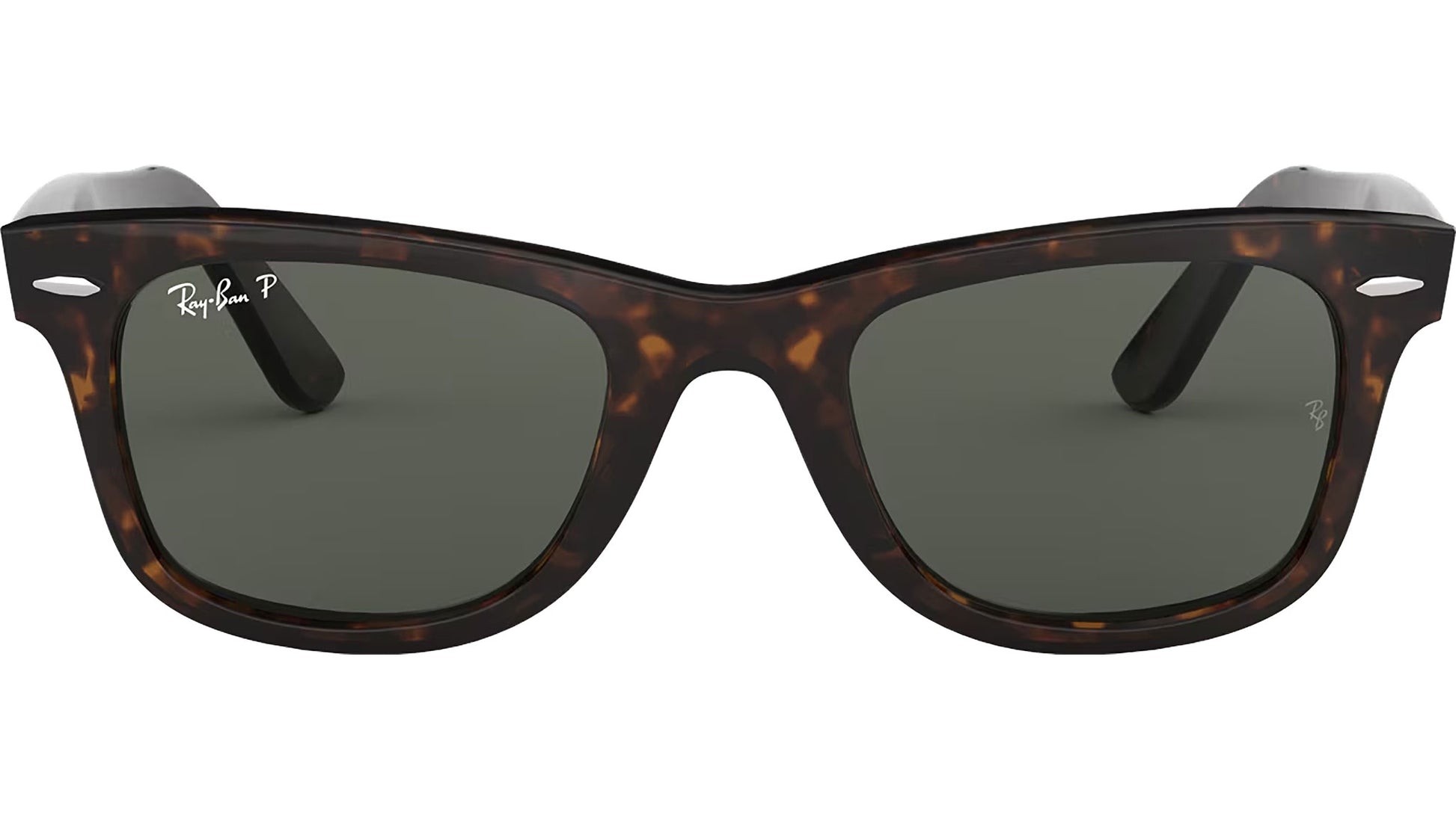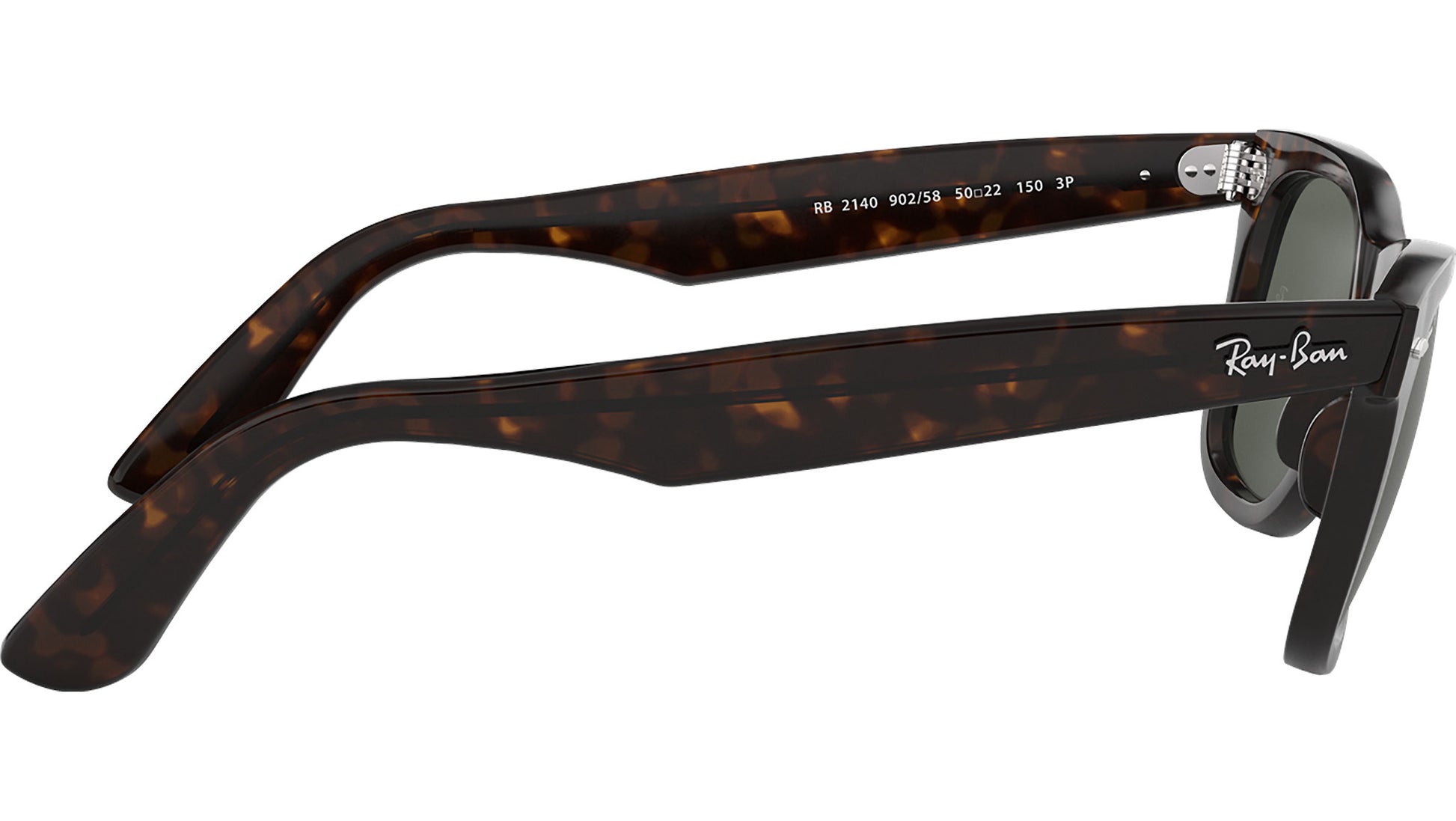 Wayfarer RB2140 902/58 tortoise, acetate frame, acetate temple, featuring green polarized crystal lens.