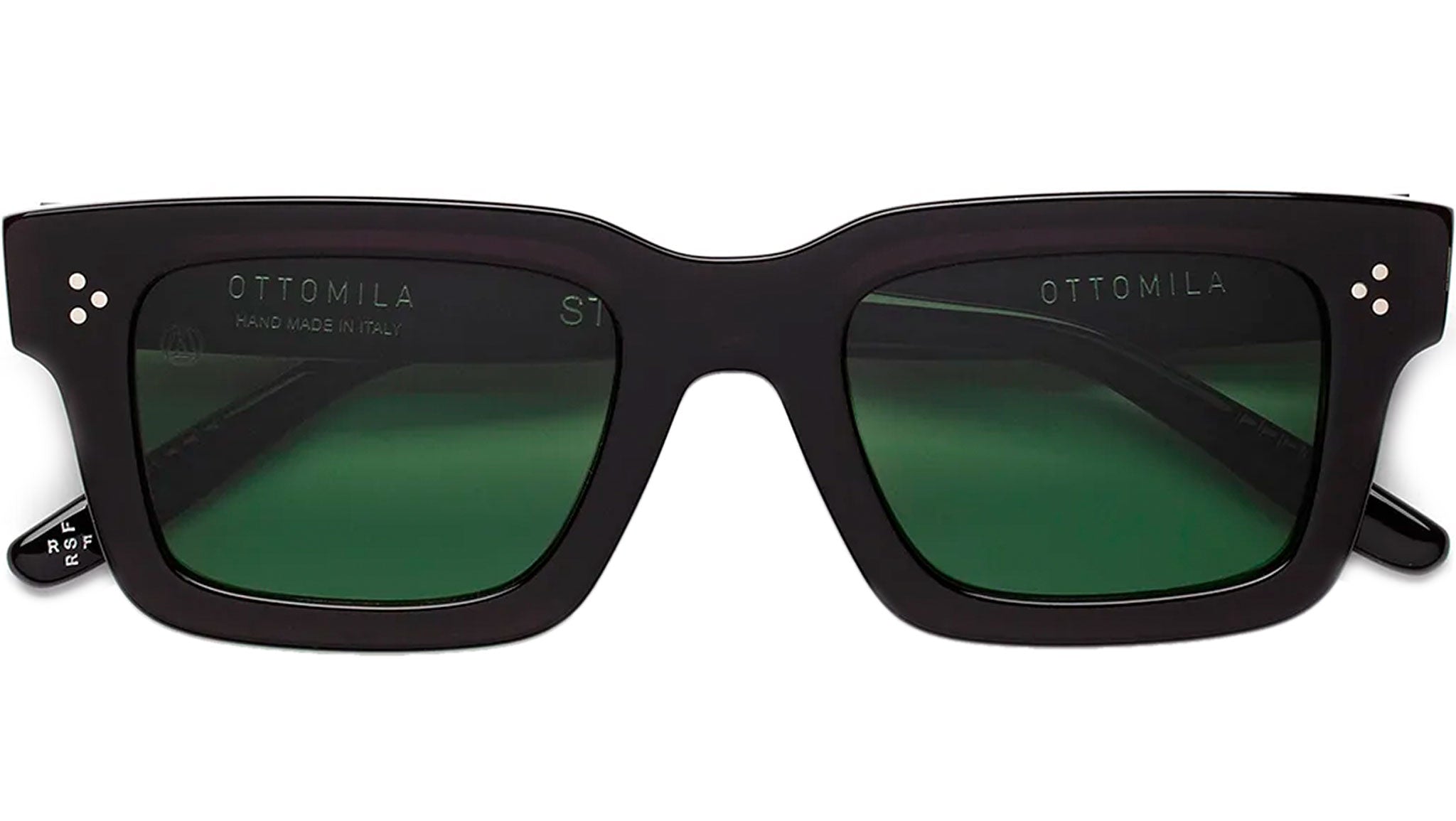 A timeless piece of eyewear created for the high-end Italian-American brand Ottomila, Stinger is an essential geometric silhouette characterized by a thick and sturdy acetate construction. Inspired by 1950s Italian film noir, the model exudes a mysterious energy, with its protruding temples and sharp lines. The rims were carefully carved on the sides, emphasizing a meticulous, obsessive attention to detail that characterizes Ottomila’s products. This model comes with black acetate and forest green lenses.