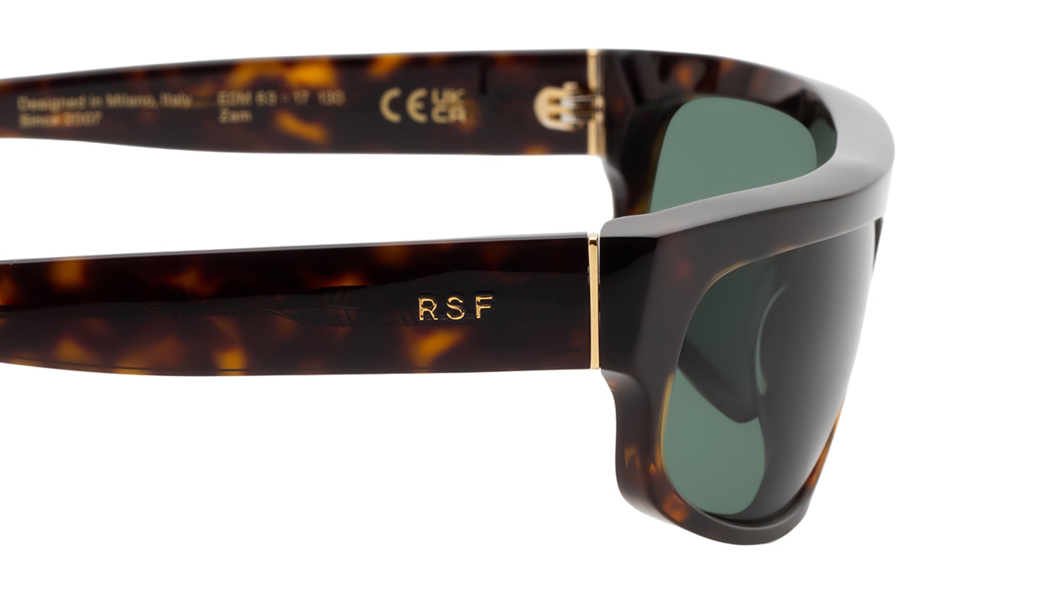 High grade Italian acetate in a rich and dark Havana acetate. Mounting elegant bottle green lenses by Zeiss in base 8. Premium eyewear handmade in ItalySizes: R. Lens Width: 63 mm. Frame Front: . Frame Side: 130 mm. Product Code Size R: E0M.