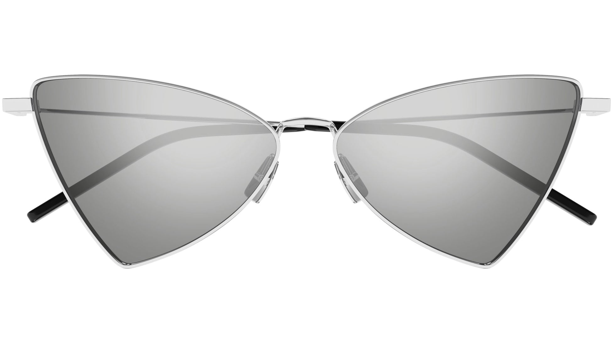 Saint Laurent New Wave sunglasses model SL 303 JERRY geometric metal frame color code 010 shiny silver with silver temple and solid grey + triflection methane lens.