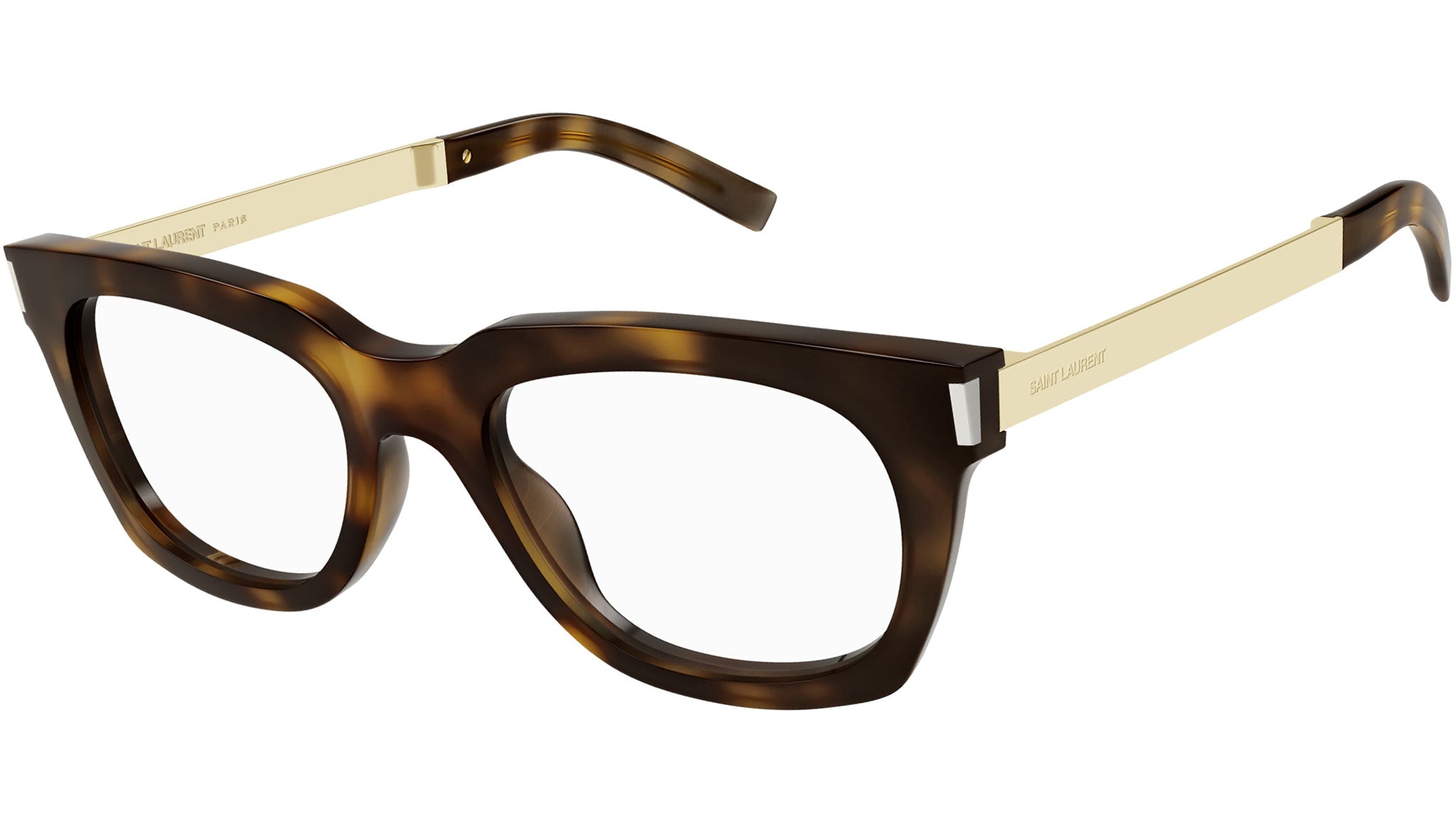 Saint Laurent Classic optical collection model SL 583 002 featuring shiny medium tortoise frame and gold temple.