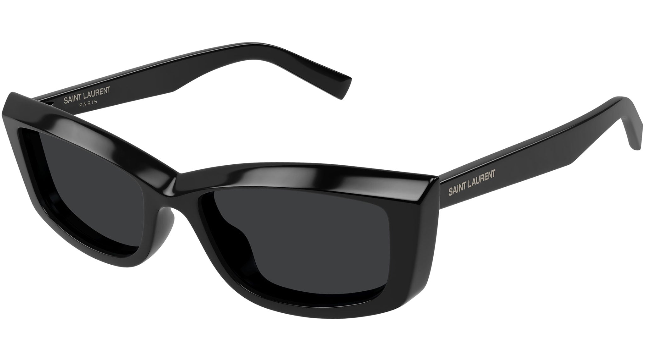 Saint Laurent SL 658 001 sunglasses for women, featuring shiny solid black cat eye recycled acetate frame and solid black bio nylon lenses. Brand line: New Wave. Style code: SL 658. Color code: 001. Made in Italy. Authorized Saint Laurent online reseller. Your glasses will include the original case and accessories and are covered by a 12-month global warranty.