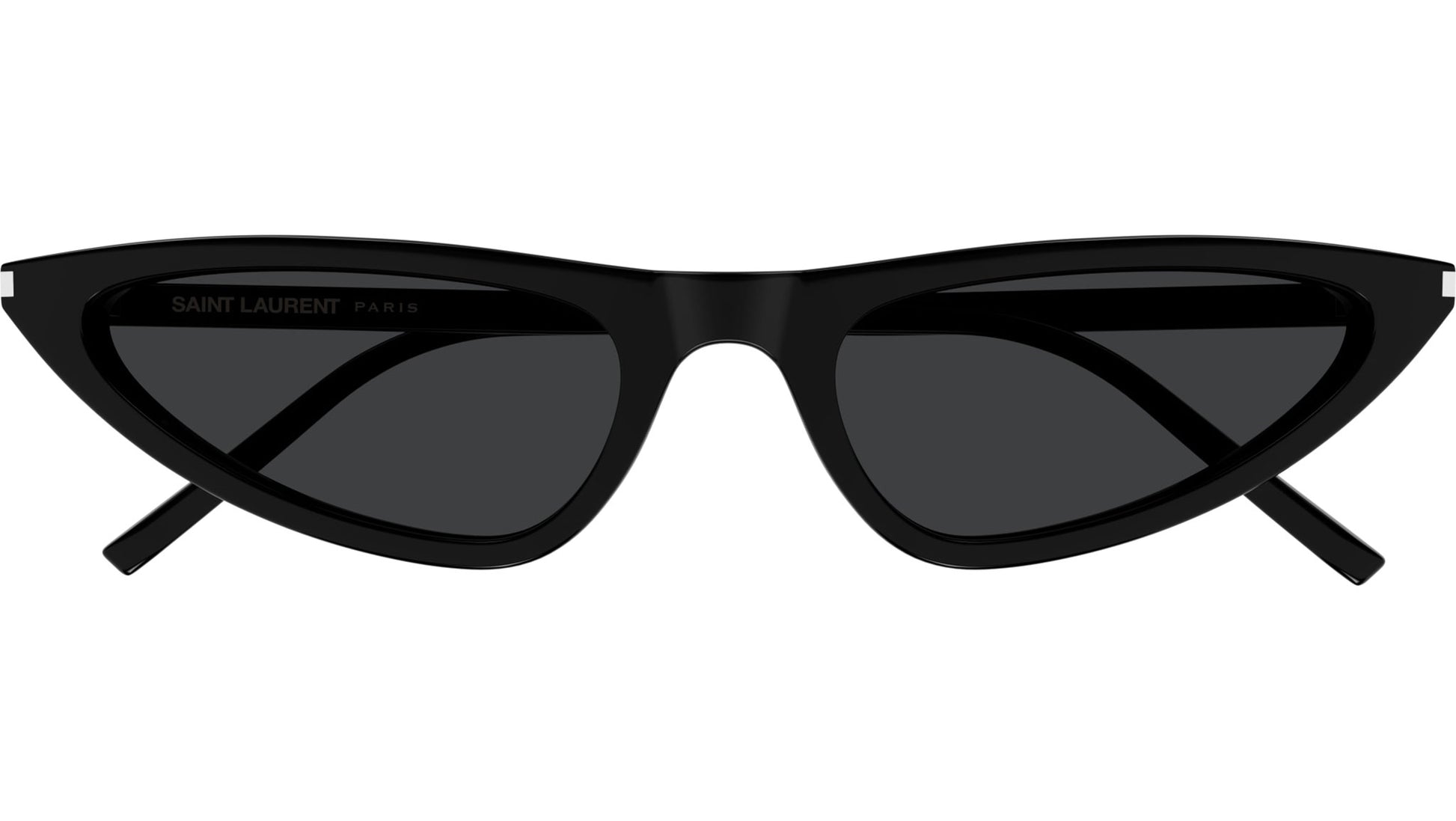Saint Laurent SL 703 001 sunglasses for women, featuring shiny solid black cat eye recycled acetate frame and solid black bio nylon lenses. Brand line: Classic. Style code: SL 703. Color code: 001. Made in Italy. Authorized Saint Laurent online reseller. Your glasses will include the original case and accessories and are covered by a 12-month global warranty.