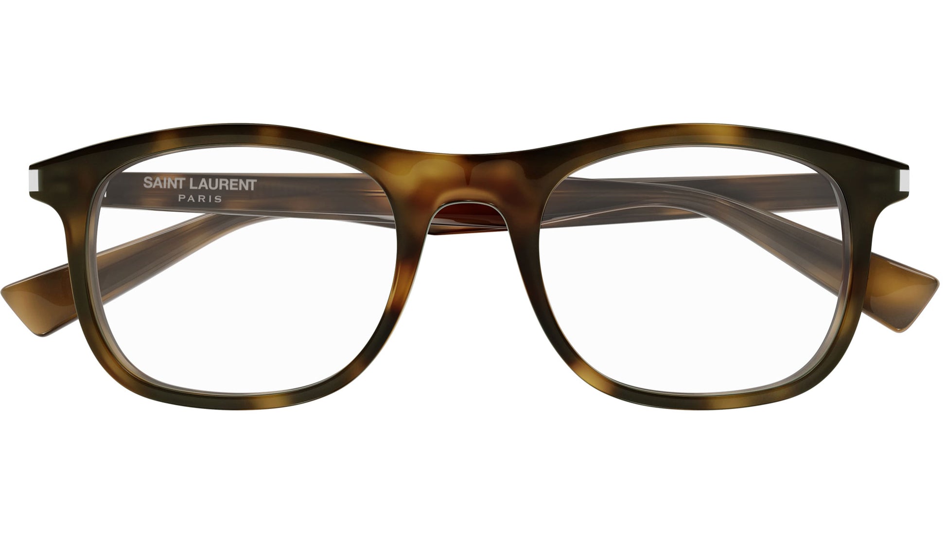 Saint Laurent SL 811 003 glasses for men and woman, featuring shiny medium havana rectangular recycled acetate frame and demo lenses. Brand line: Corner Angle. Style code: SL 811. Color code: 003. Made in Italy. Authorized Saint Laurent online reseller. Your glasses will include the original case and accessories and are covered by a 12-month global warranty.