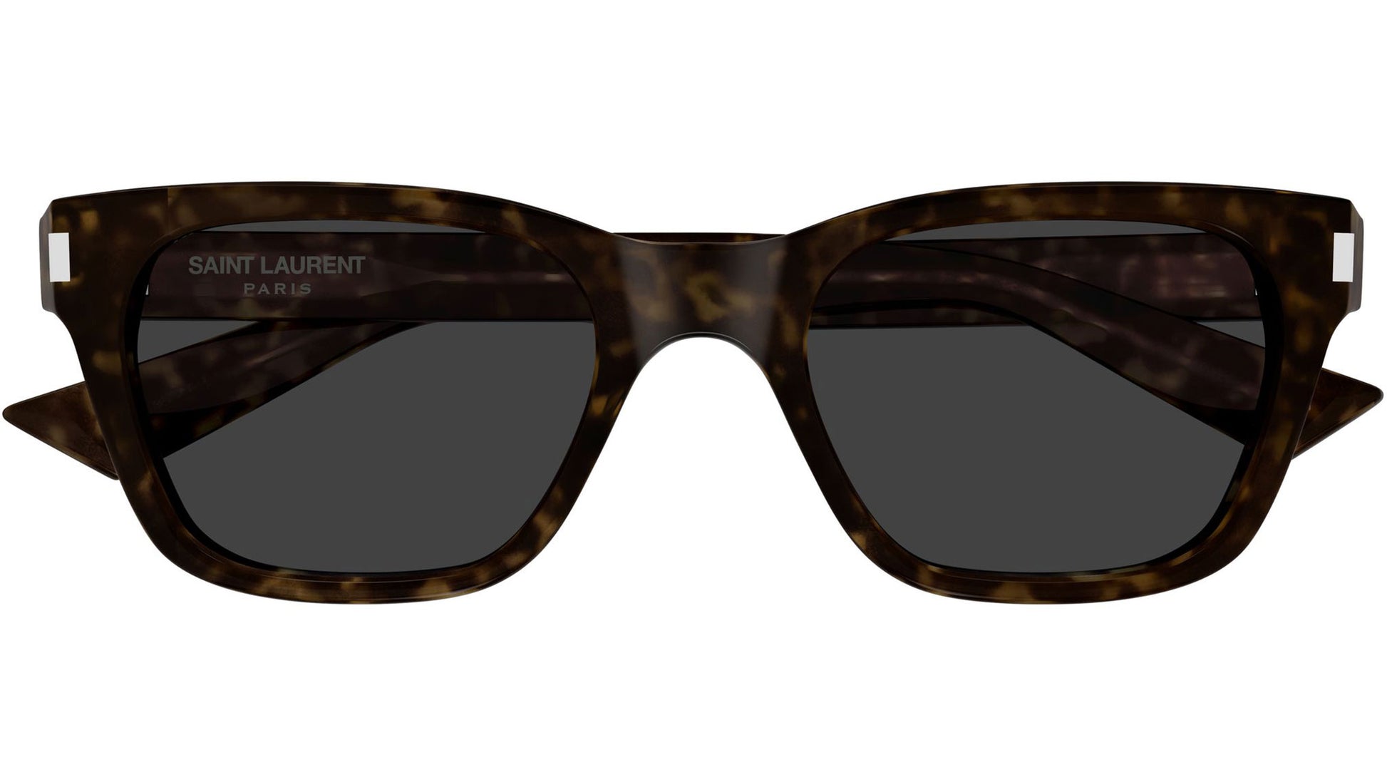 Saint Laurent SL 874 002 sunglasses for men and woman, featuring shiny dark havana rectangular recycled acetate frame and solid grey bio nylon lenses. Brand line: Corner Angle. Style code: SL 874. Color code: 002. Made in Italy. Authorized Saint Laurent online reseller. Your glasses will include the original case and accessories and are covered by a 12-month global warranty.