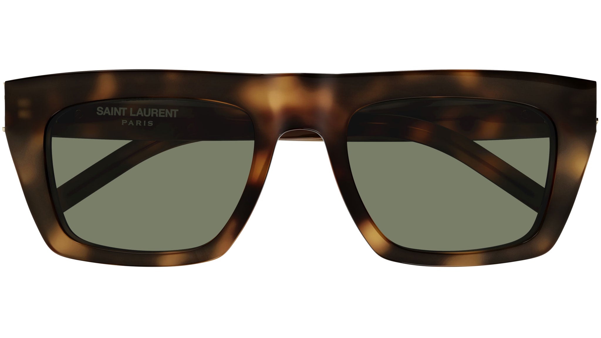 Saint Laurent SL M131 003 sunglasses for men and woman, featuring shiny medium havana rectangular recycled acetate frame and solid green bio nylon lenses. Brand line: Classic. Style code: SL M131. Color code: 003. Made in Italy. Authorized Saint Laurent online reseller. Your glasses will include the original case and accessories and are covered by a 12-month global warranty.