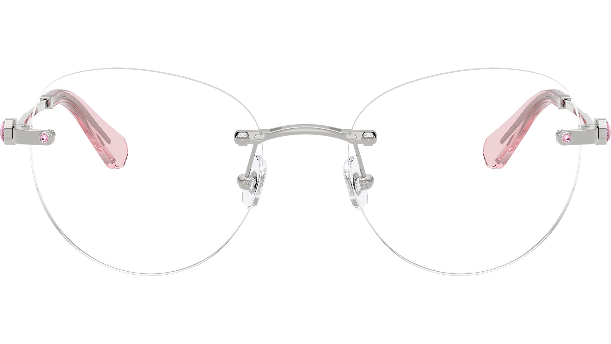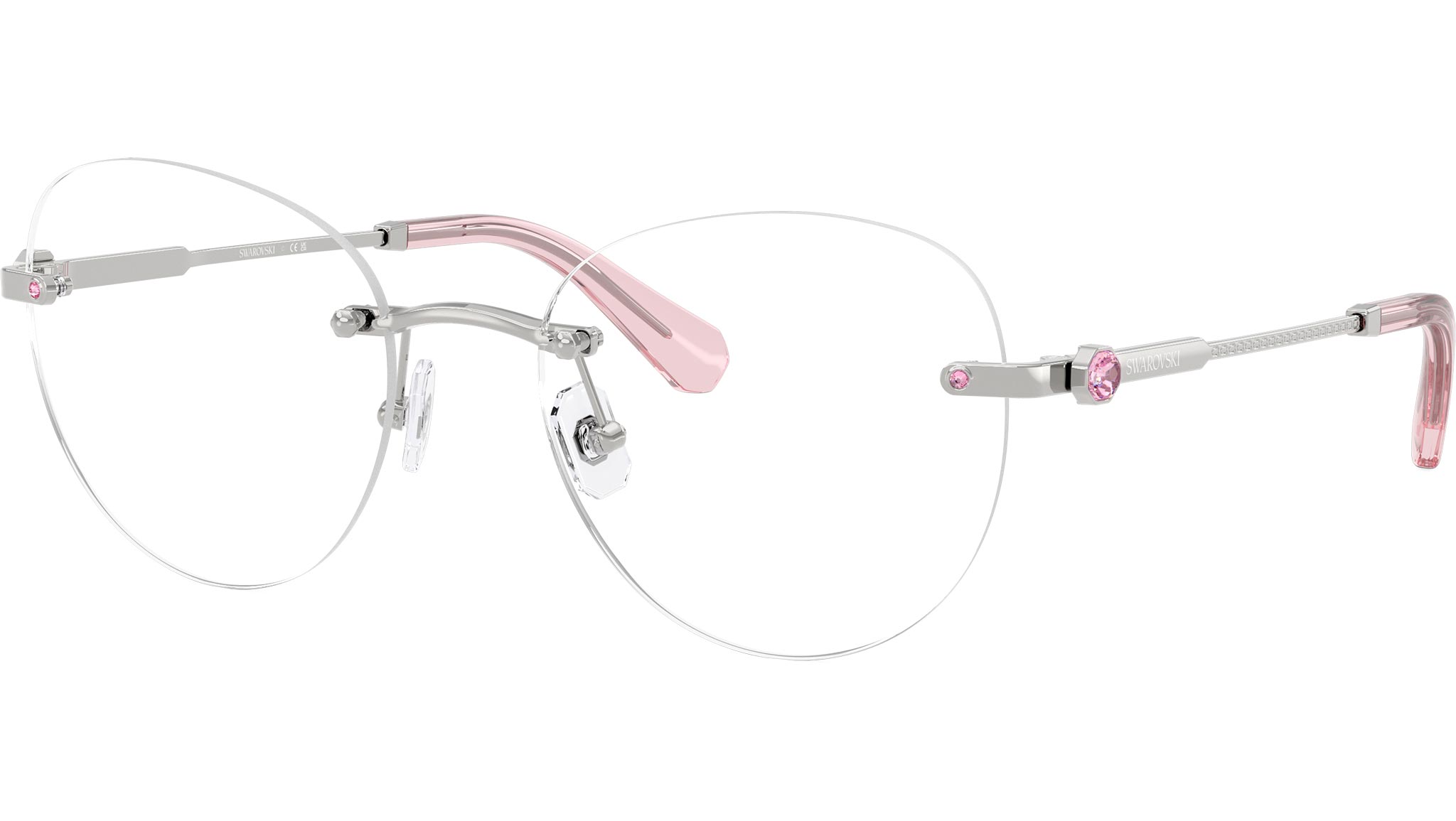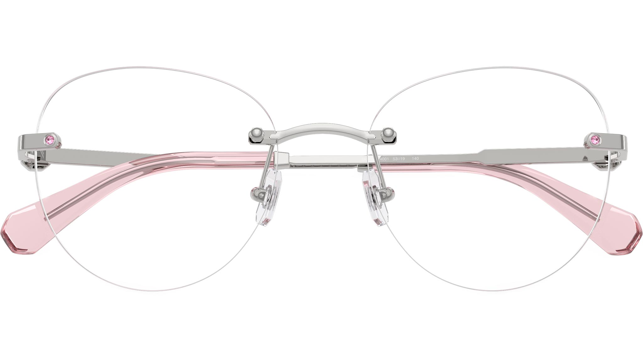 Swarovski SK1021 4001 glasses for women, featuring silver panthos metal frame and demo lenses. Adjustable nosepads. Brand line: Science of Facets. Style code: SK1021. Color code: 4001. Authorized Swarovski online reseller. Your glasses will include the original case and accessories and are covered by a 12-month global warranty.