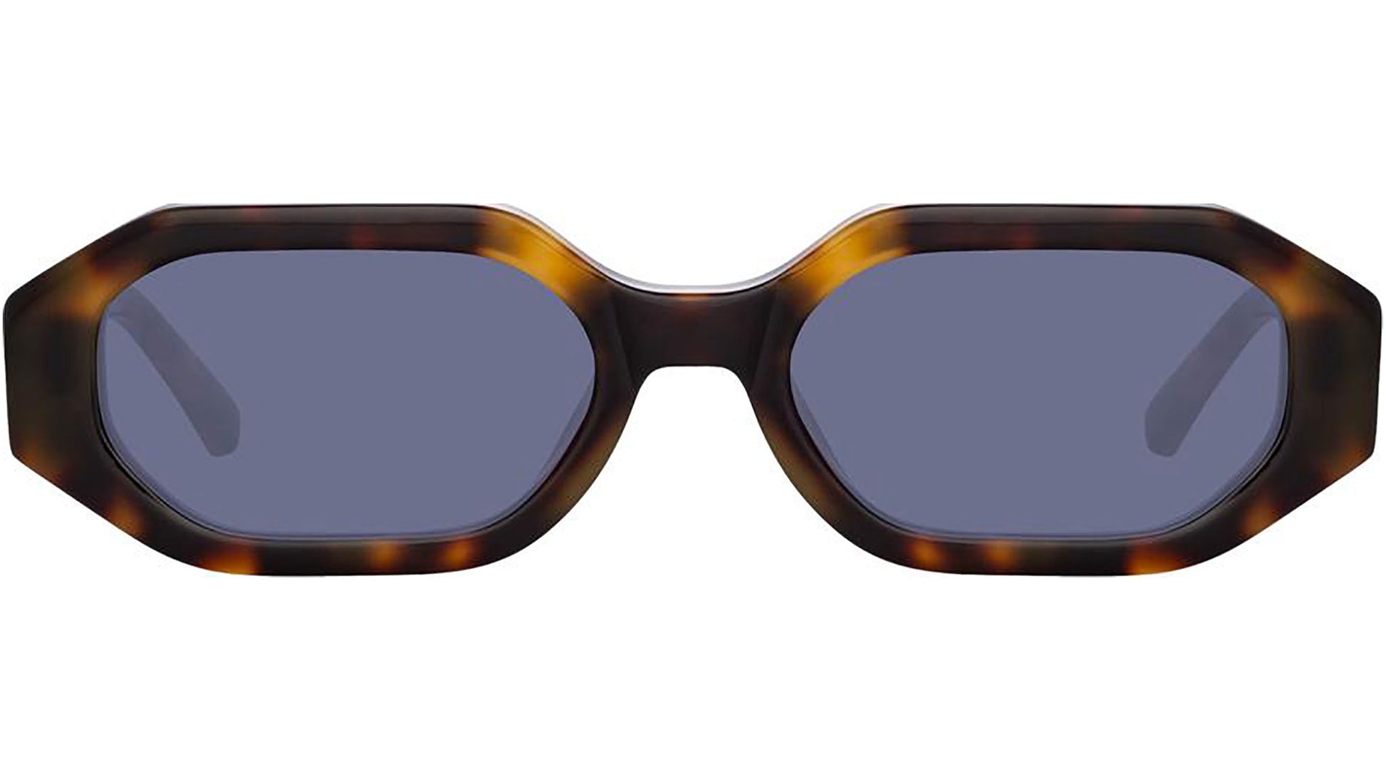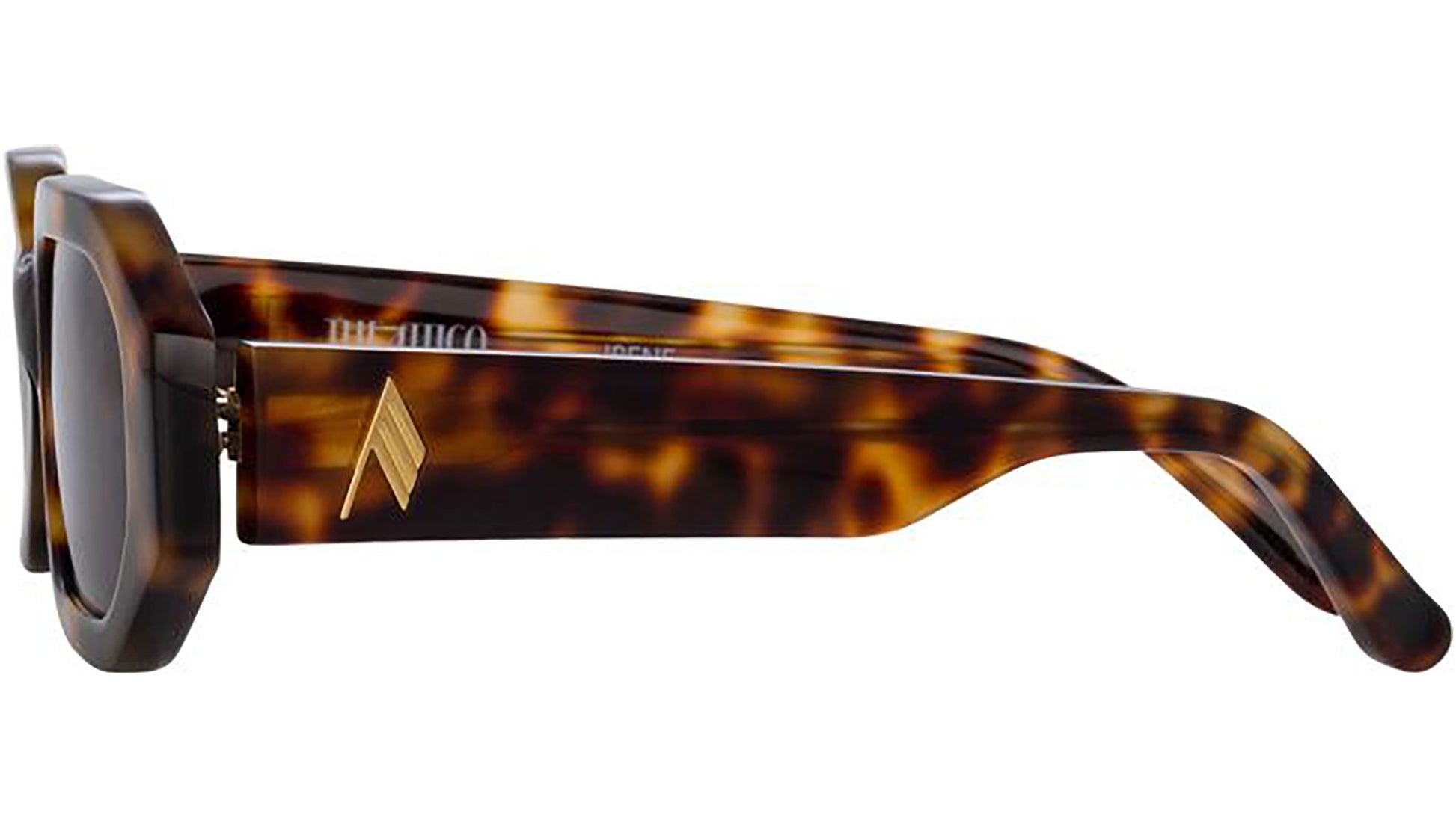 The newest addition to The Attico family, the Irene sunglasses bring the attitude of the Milan fashion house with them. Sculpted from recycled tortoise acetate the angular hexagonal frames are highly polished to bring softness to their edge. The temples bear a gold monogram logo and the style is completed with solid navy lenses for 100% UV protection.