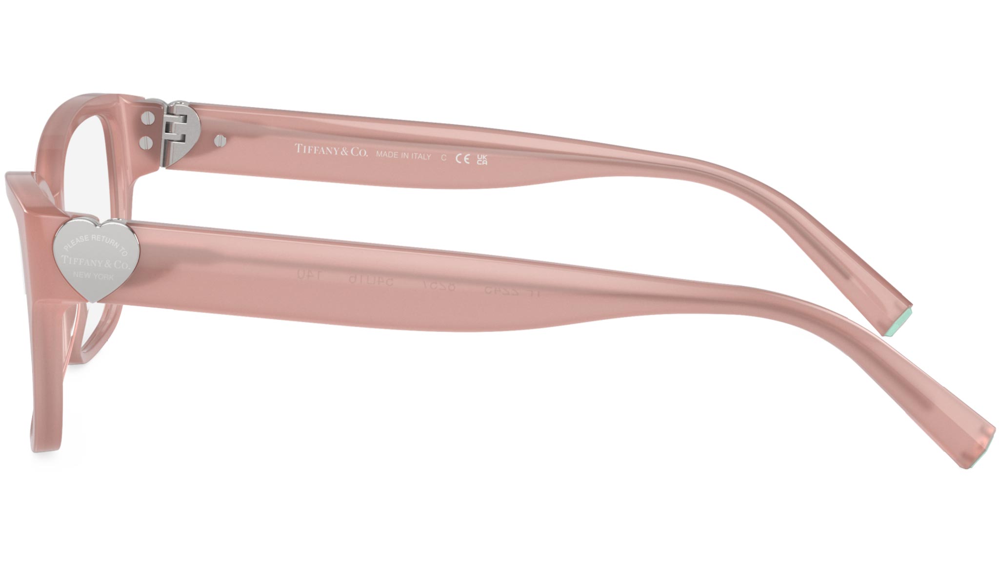 Tiffany optical frame for women model 0TF2245 featuring opal pink full rim acetate frame and base 4 demo lens. High bridge fit. Frame line: Icons. Brand code: 0TF2245. Color code: 8395. Authorised Tiffany Eyewear Online Reseller. Your glasses will come including the original case and accessories and will be covered by 12 month global warranty.
