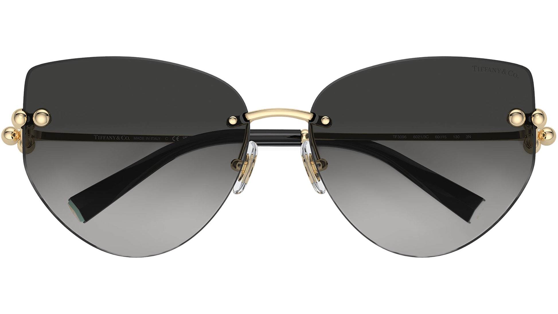Tiffany sunglasses for women model 0TF3096 featuring pale gold rimless metal frame and base 4 grey gradient lenses. Adjustable nosepads. Frame line: Icons. Brand code: 0TF3096. Color code: 60213C. Authorised Tiffany Eyewear Online Reseller. Your glasses will come including the original case and accessories and will be covered by 12 month global warranty.