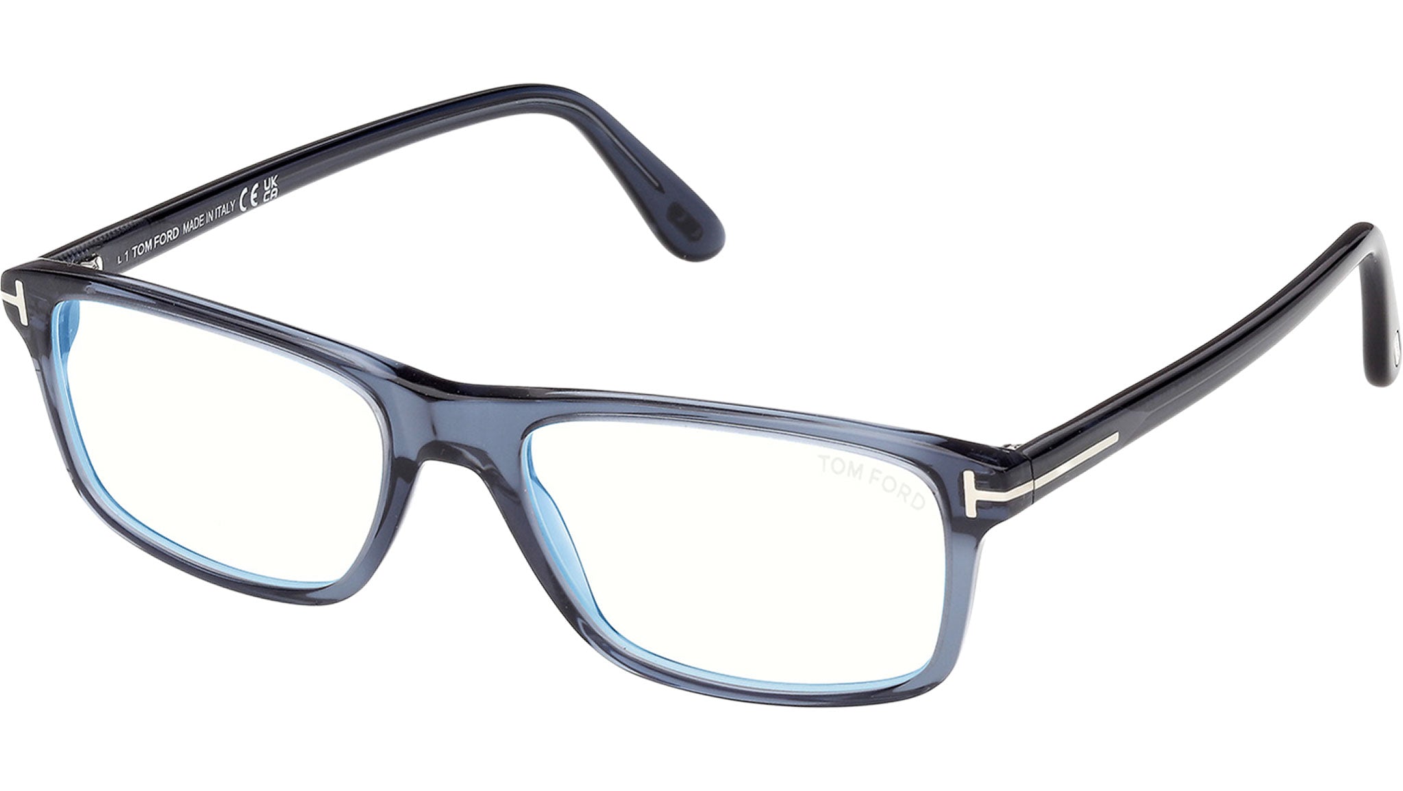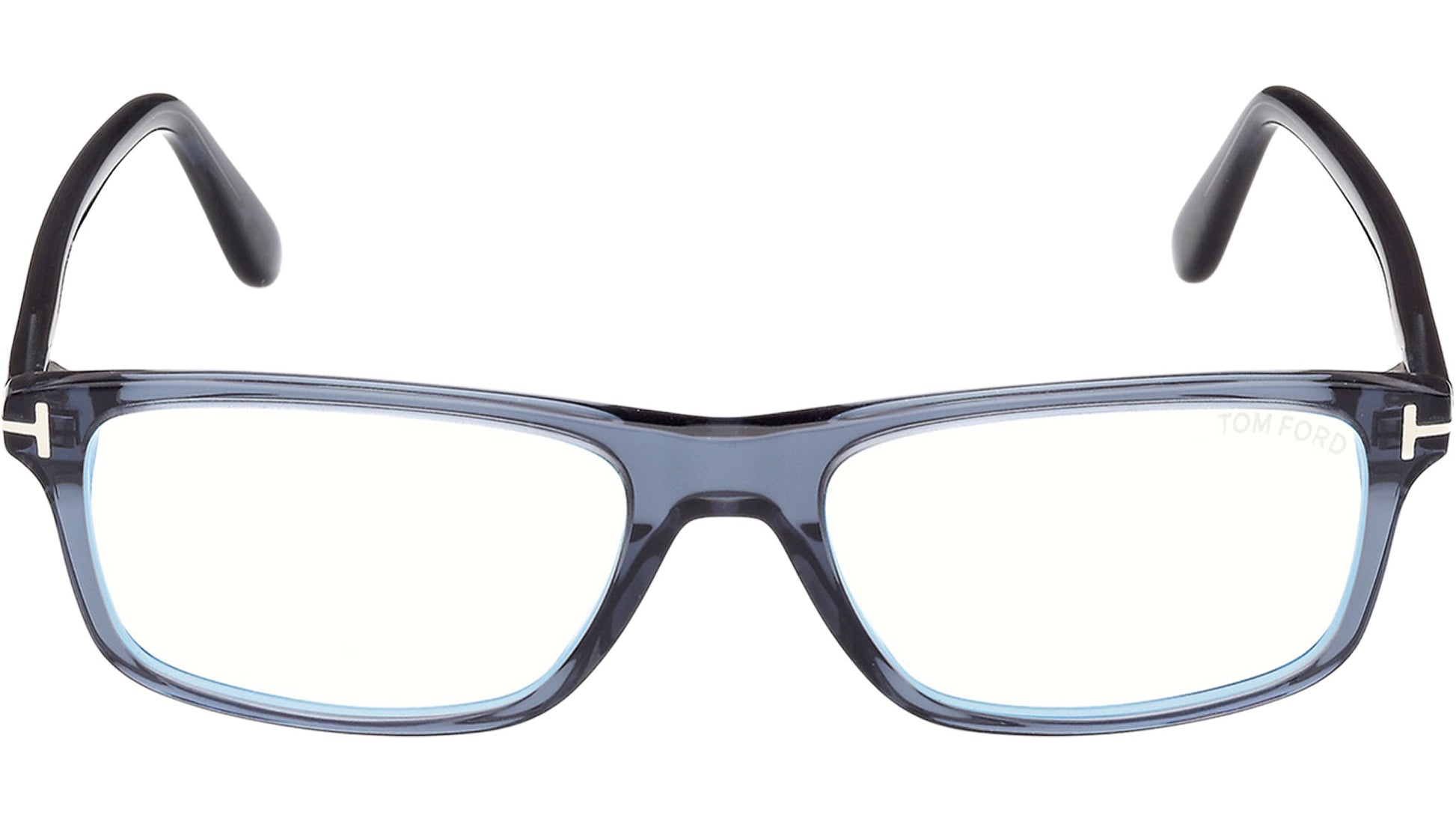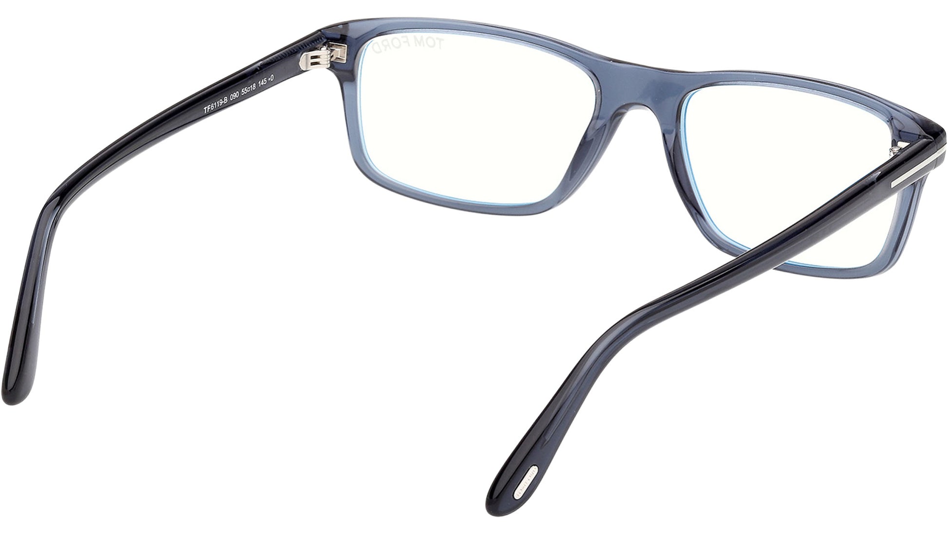 Tom Ford glasses for men model FT6119-B featuring shiny blue full-rim acetate frame and transparent demo lenses. Brand code: 6119-B. Color code: 090. Authorised Tom Ford Eyewear Online Reseller. Your glasses will include the original case and accessories and will be covered by a 12-month global warranty.