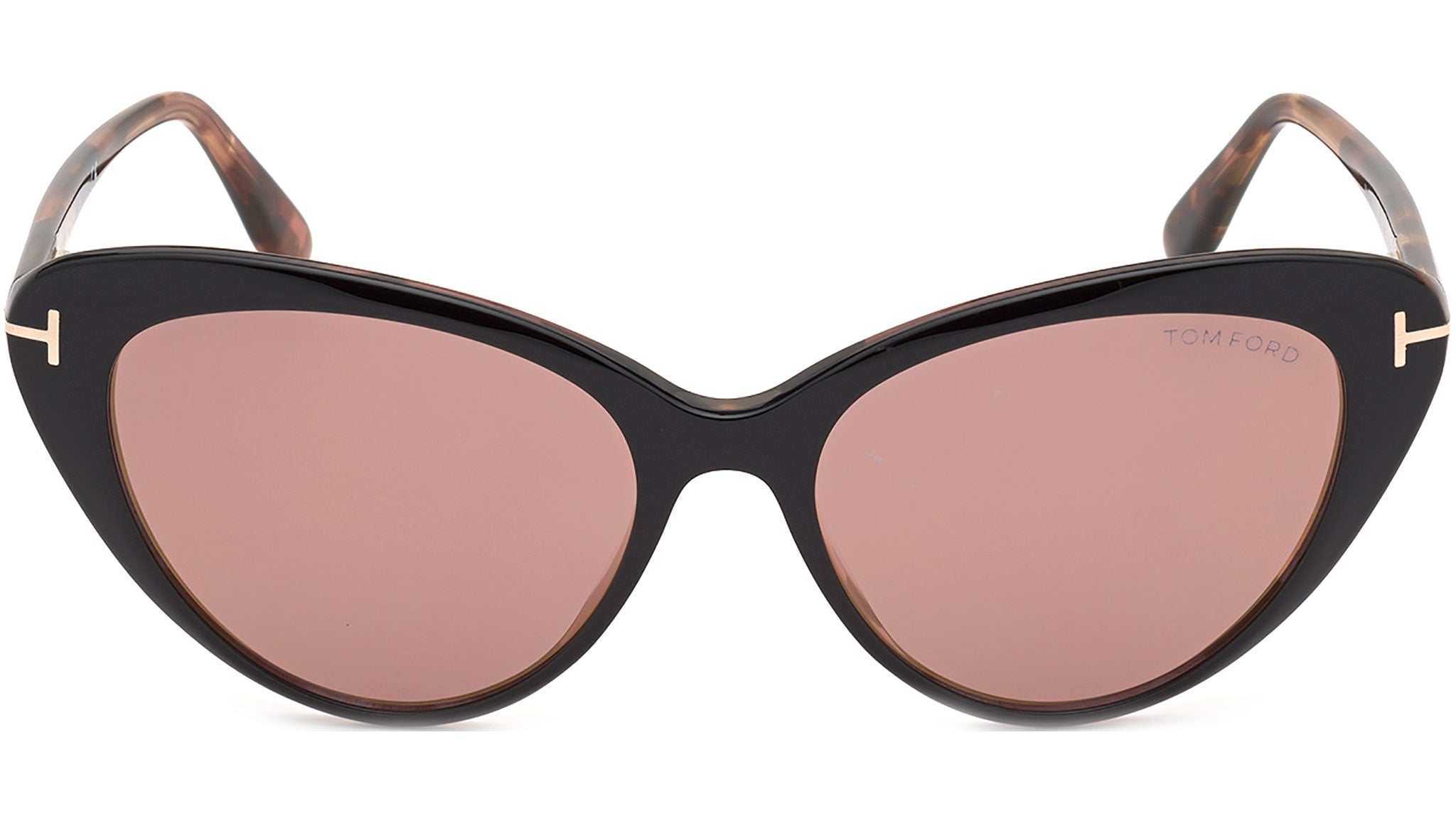Tom Ford Harlow sunglasses model FT0869 05Z featuring black frame and gradient pink mirror lens.