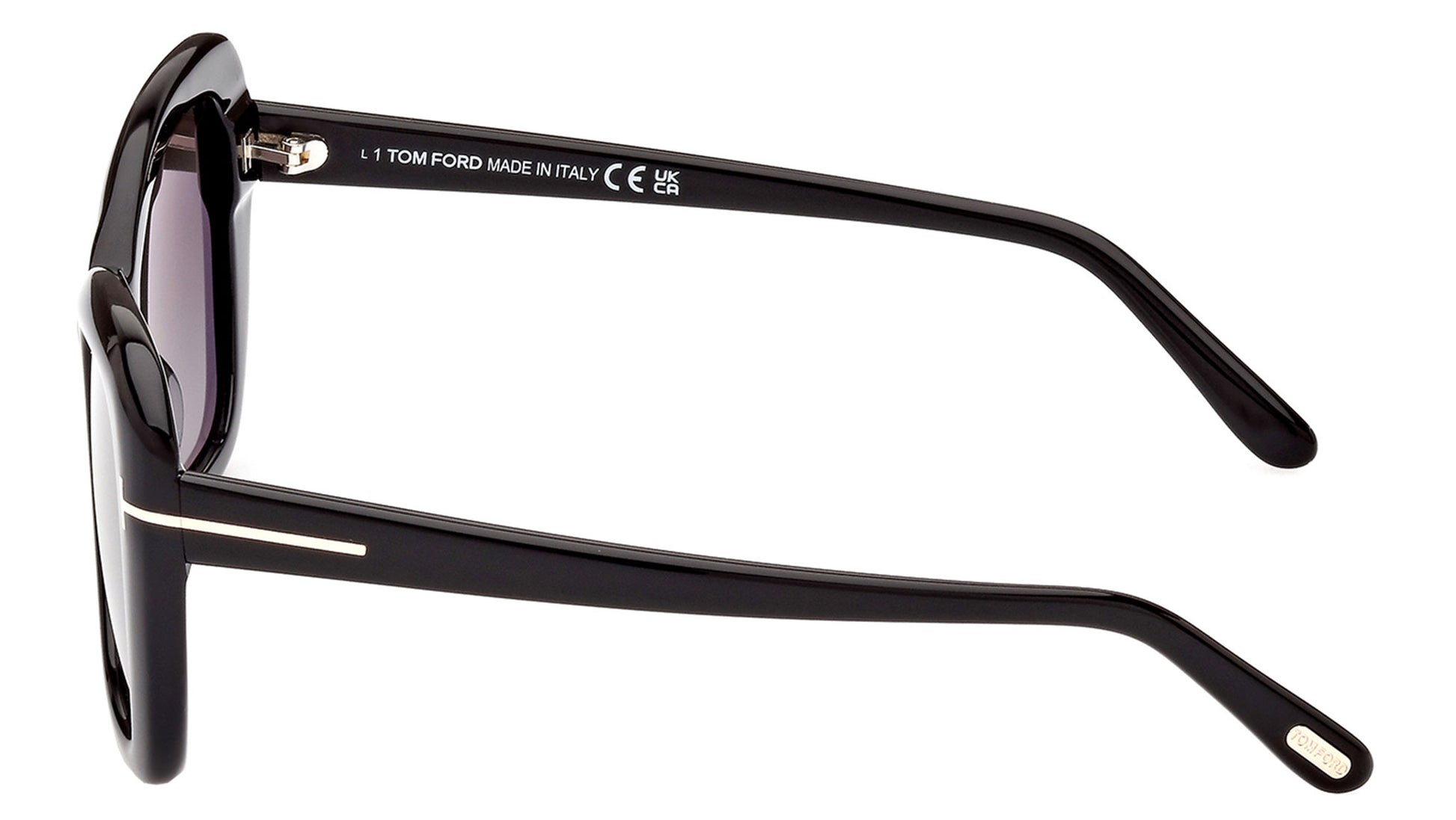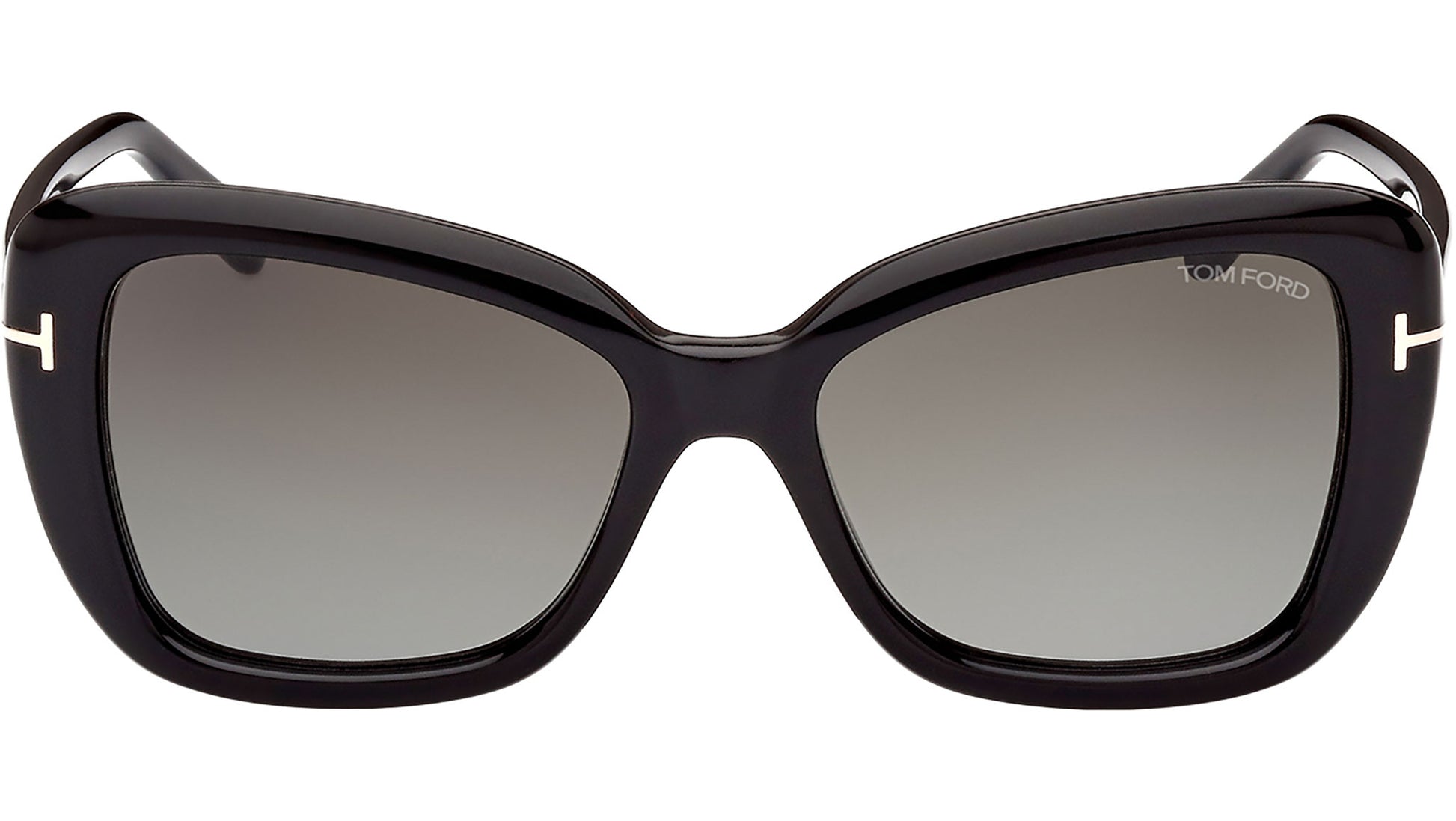 Tom Ford Maeve sunglasses model FT1008 in shiny black, color code 01B with brown gradient lens. The latest Tom Ford eyewear collection draws inspiration from two distinct concepts: refined minimalism, which highlights essential designs, timeless shapes, premium materials; and precious combinations, showcasing innovative blends of acetate and metal, unexpected design solutions, and technological advancements. Exemplifying bold and sleek silhouettes, the collection showcases eyewear distinguished by exquisite blends of acetate and metal, resulting in distinctive and instantly recognizable designs. Iconic elements such as the 'T' metal logo and the renowned infinity symbol adorn the frames, while popular styles are reimagined in fresh color palettes that reflect the latest fashion trends.