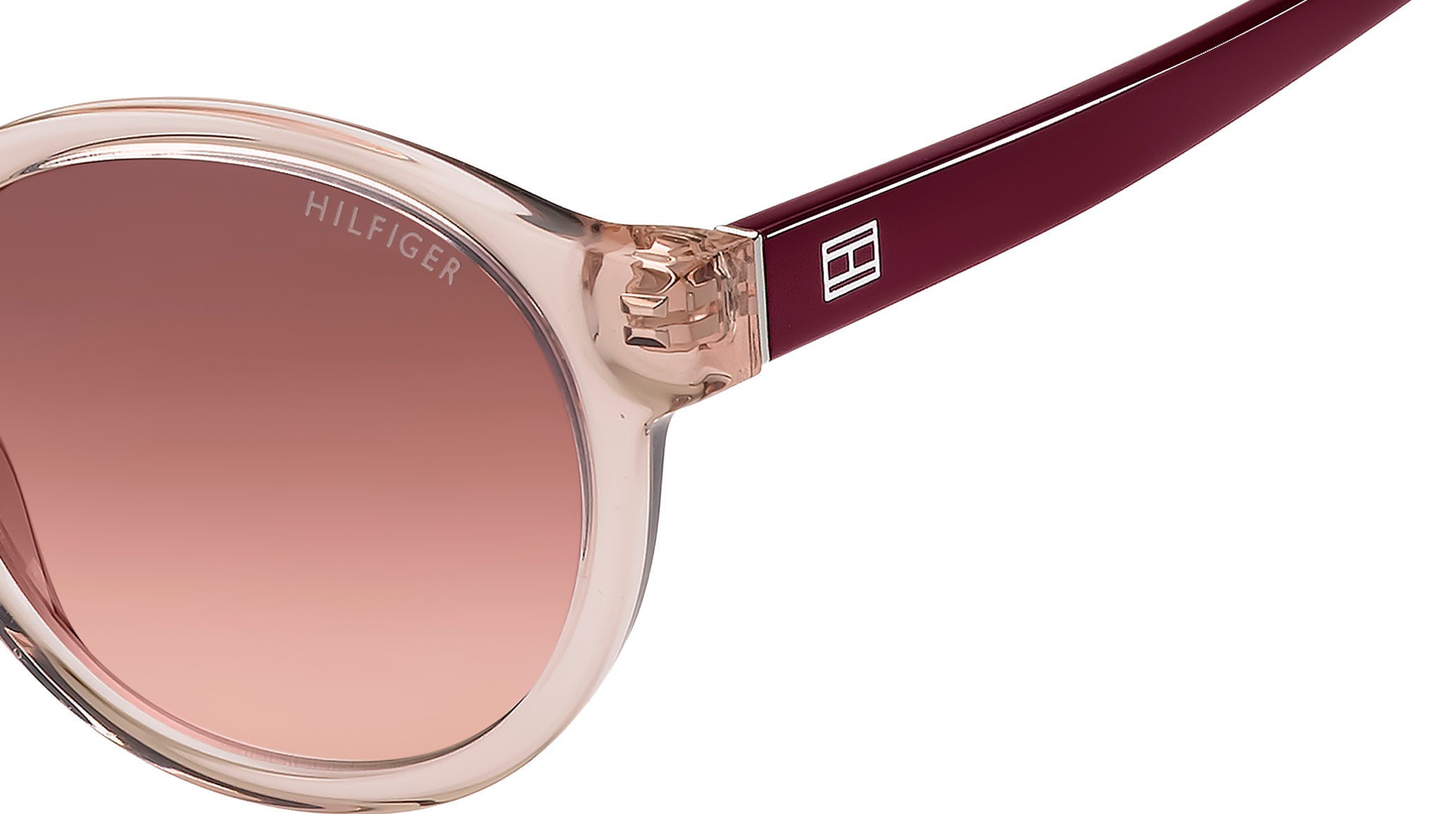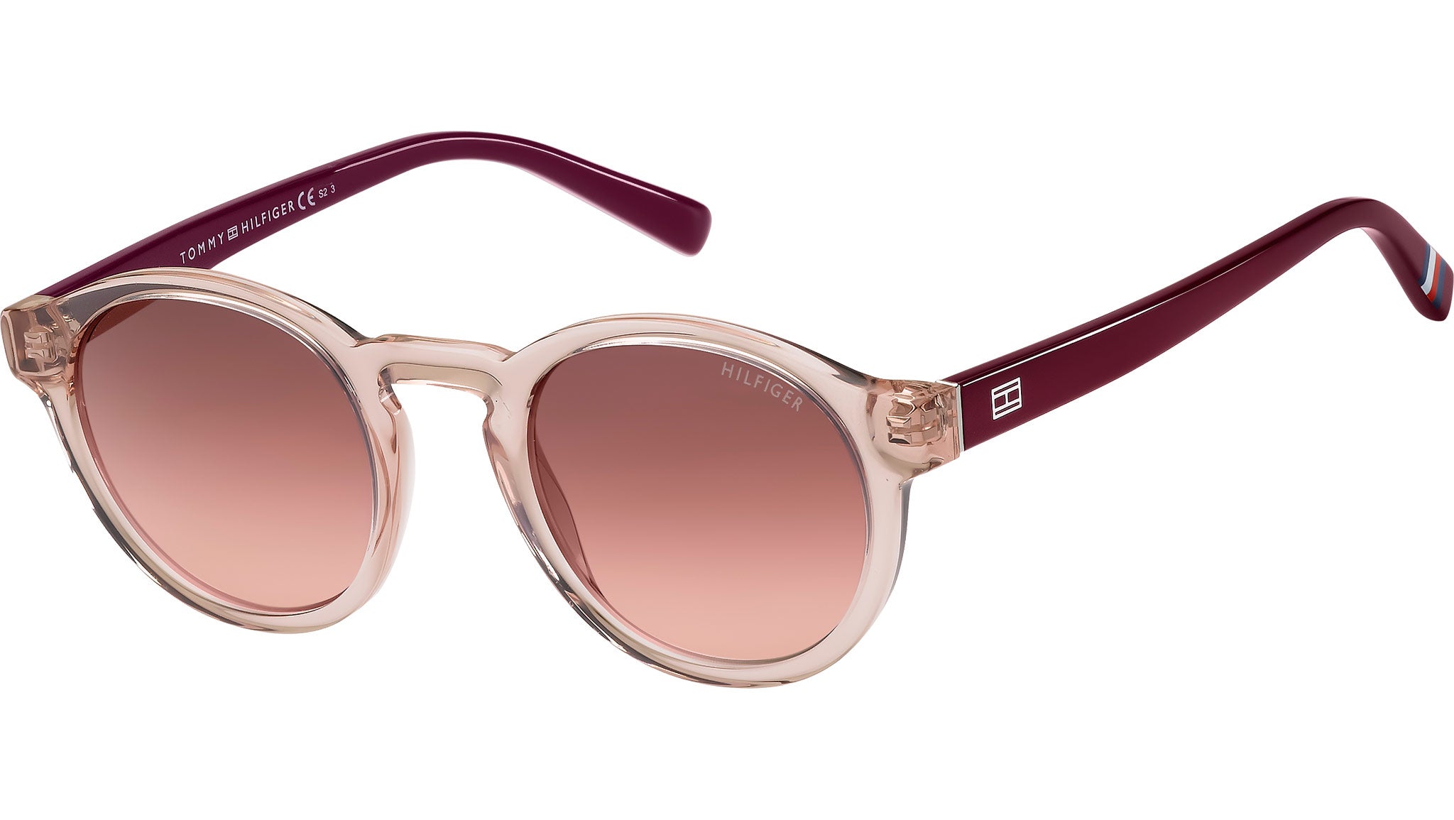 Tommy Hilfiger TH 1856/RE/S NXA 3X sunglasses featuring pink burgundy panthos eco acetate frame and pink doubleshade lenses. Brand line: GVNV Capsule. Style code: 204244. Color code: NXA 3X. Authorized Tommy Hilfiger online reseller. Your glasses will include the original case and accessories and are covered by a 12-month global warranty.