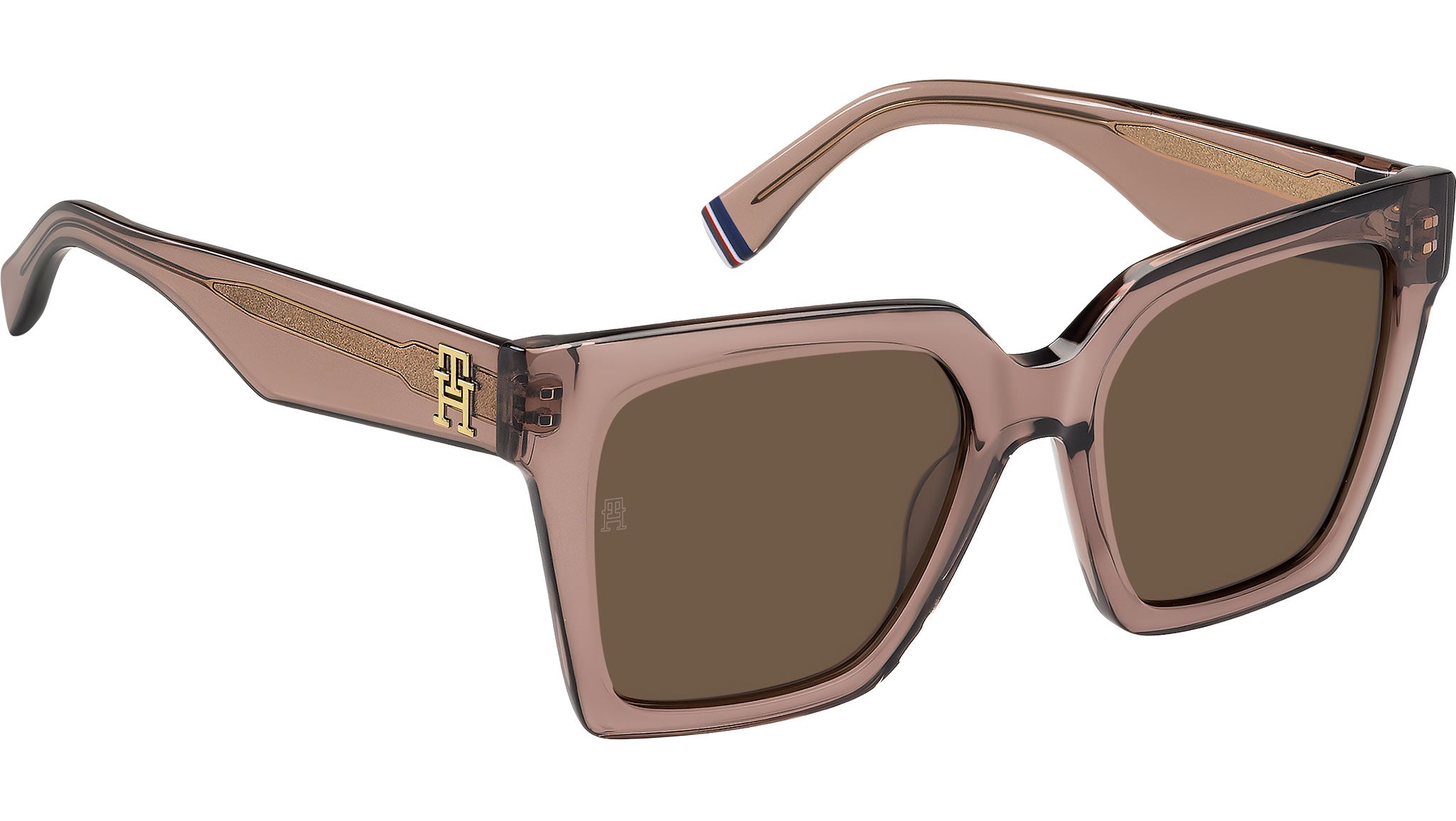 Tommy Hilfiger TH 2100/S 35J 70 sunglasses featuring pink squared acetate frame and brown lenses. These Tommy Hilfiger sunglasses for women combine preppy inspiration and the latest trends. The acetate frames are bold and alluring, designed to get noticed while conveying a nonchalant attitude. The collegiate TH monogram echoes the Ivy League identity of the brand, engraved on the temples as a definitive touch of class. The frames can be fitted with prescription sun lenses. Available in a clear-lens option with anti-glare technology. Brand line: Modern Preppy. Style code: 206771. Color code: 35J 70. Authorized Tommy Hilfiger online reseller. Your glasses will include the original case and accessories and are covered by a 12-month global warranty.