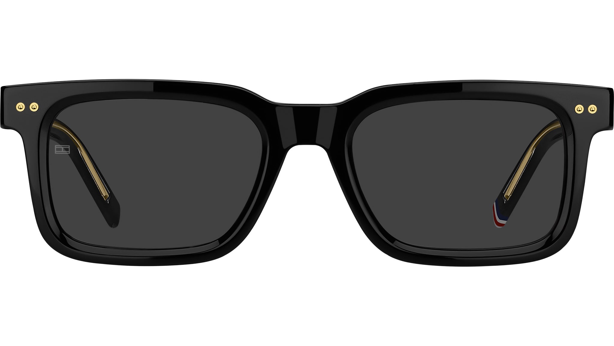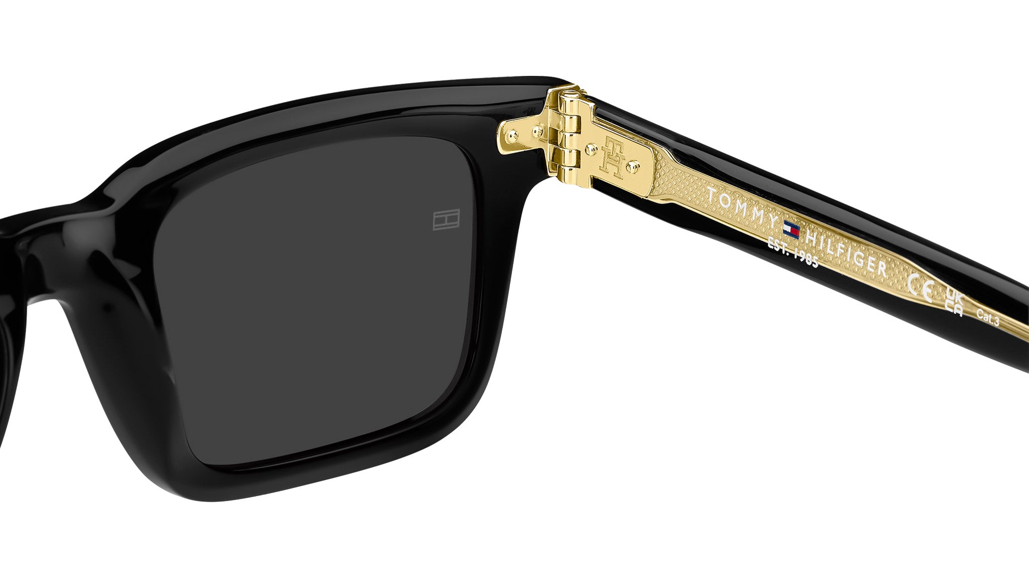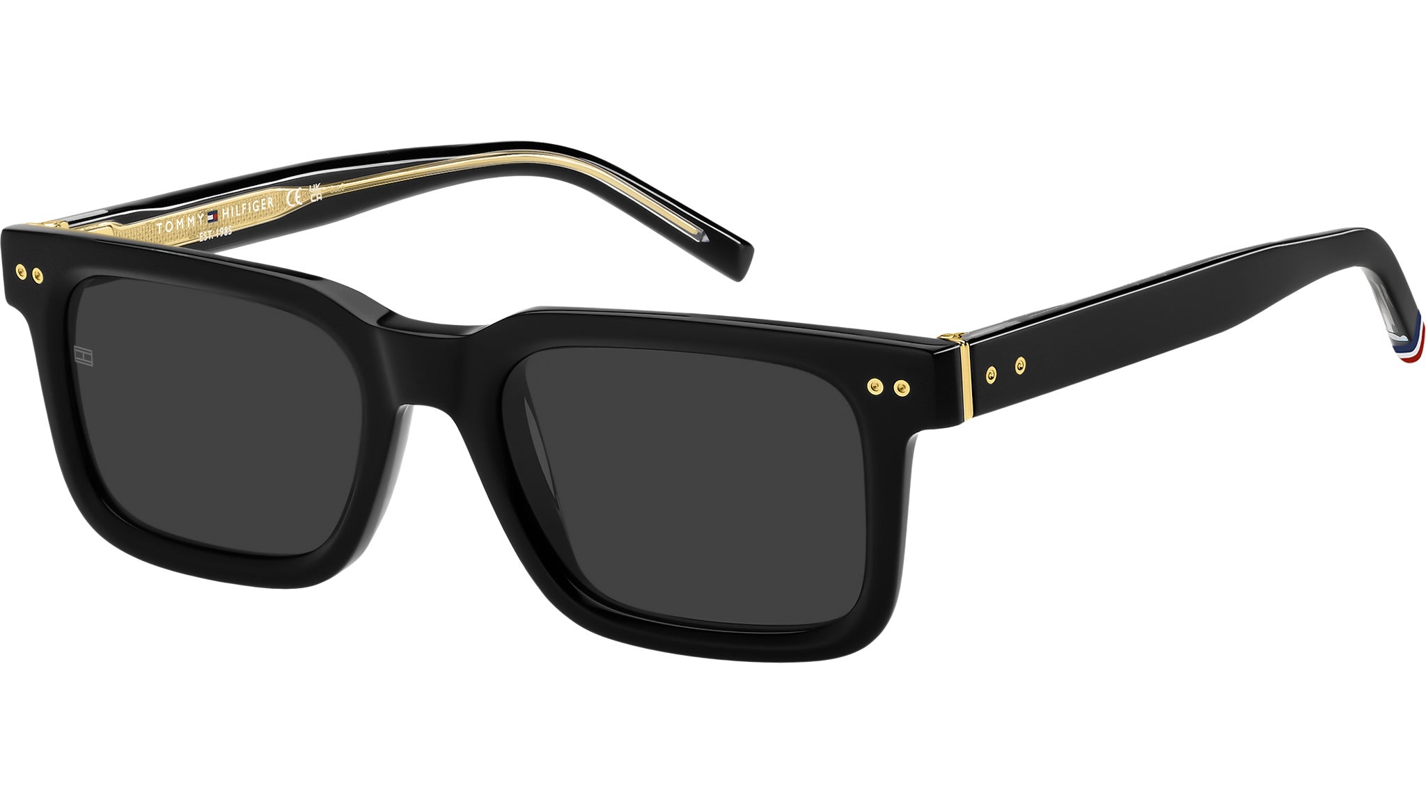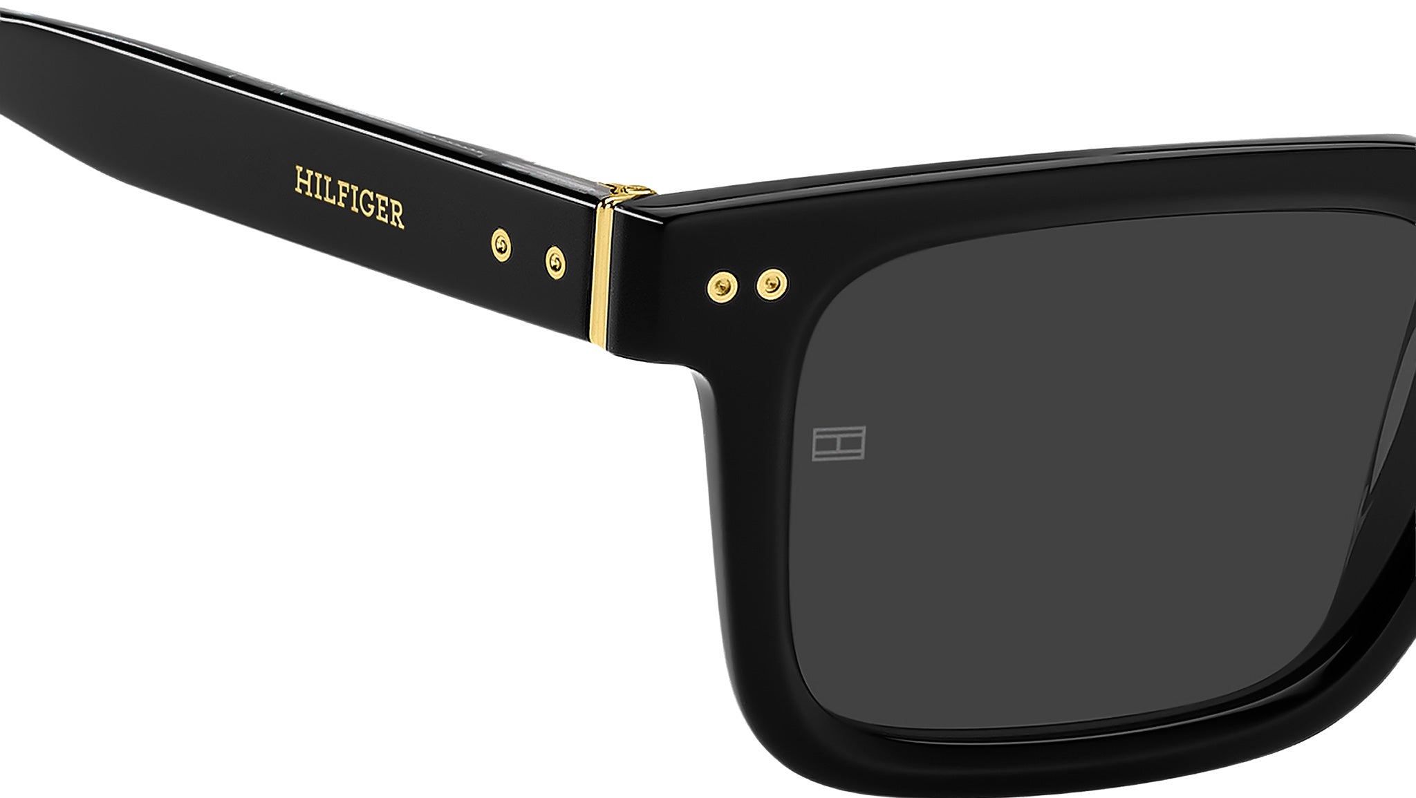 Tommy Hilfiger TH 85/S 2M2 IR sunglasses featuring black gold rectangular eco acetate frame and grey lenses. Brand line: Modern Preppy. Style code: 208104. Color code: 2M2 IR. Authorized Tommy Hilfiger online reseller. Your glasses will include the original case and accessories and are covered by a 12-month global warranty.