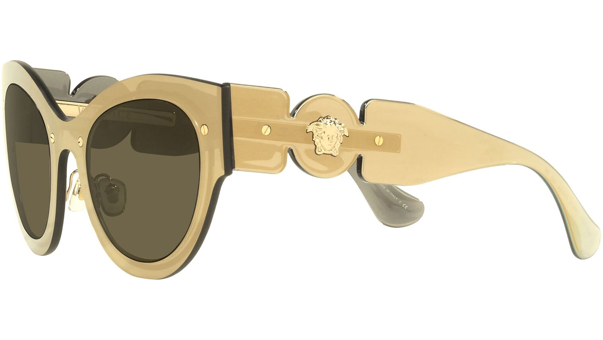 Versace sunglasses Collection model VE2234, transparent brown mirror gold frame variant, color code 1002/3 with brown lens. Versace is one of the world’s most iconic and famous luxury fashion houses. Proudly Italian, it is designed for men and women who desire a modern and glamorous style that combines sophistication and sex appeal. The Maison is the epitome of sensual glamour, sexy and empowering: a true symbol of Italian luxury.