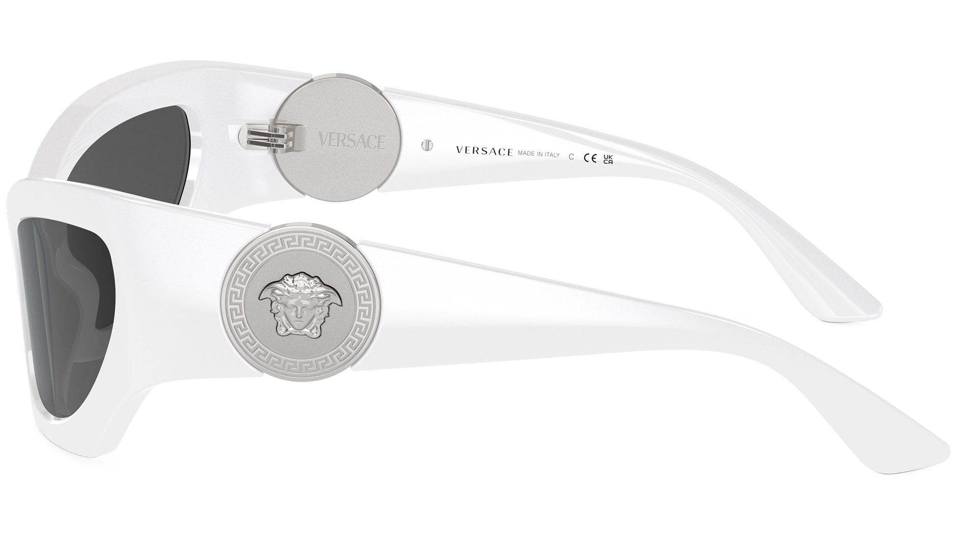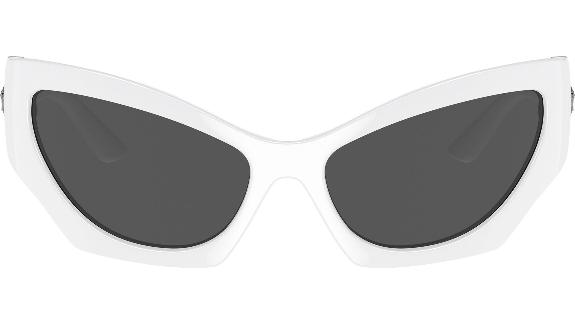 Versace sunglasses for women model 4450 featuring white full rim injection frame and base 5.5 dark grey lenses. High bridge fit. Frame line: Iconic. Brand code: 0VE4450. Color code: 314/87. Authorised Versace Eyewear Online Reseller. Your glasses will come including the original case and accessories and will be covered by 12 month global warranty.