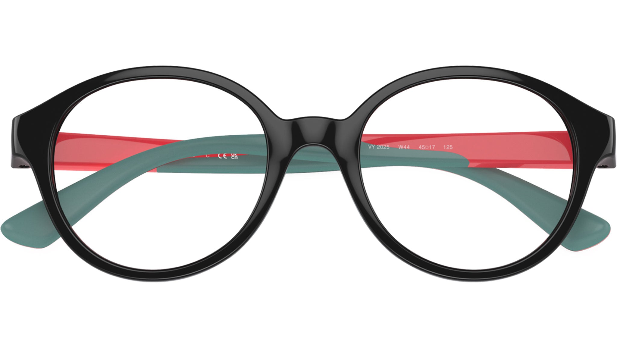 Vogue glasses for boys and girls model VY2025 W44 featuring black nylon frame and base 4 demo lens. High bridge fit. Frame line: Kids. Brand code: 0VY2025. Color code: W44. Authorised Vogue Eyewear Online Reseller. Your glasses will come including the original case and accessories and will be covered by 12 month global warranty.