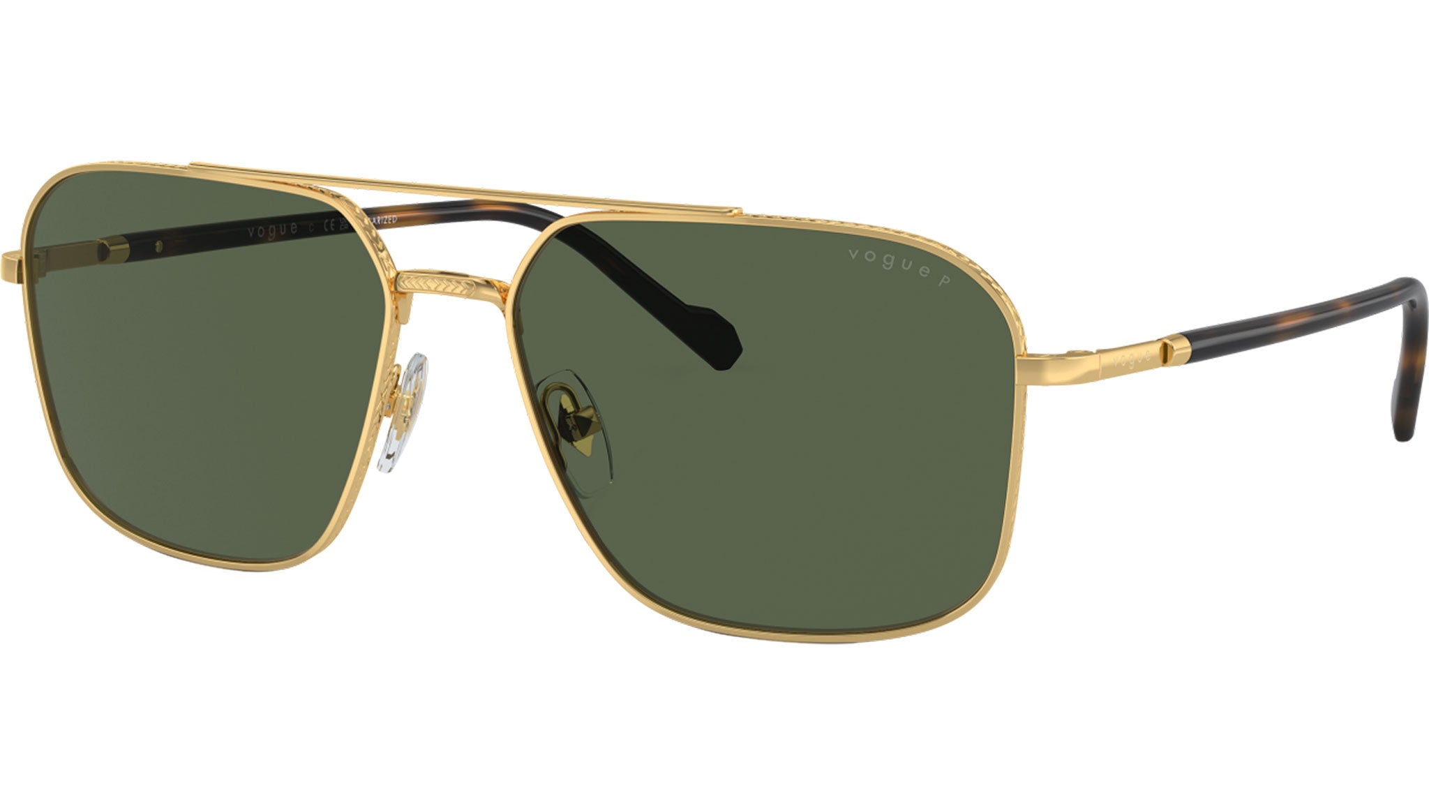 Vogue sunglasses for men model VO4289S 280/9A featuring gold metal frame and dark green polarized base 4 polycarbonate lenses. Adjustable nosepads. Frame line: Man. Brand code: 0VO4289S. Color code: 280/9A. Authorised Vogue Eyewear Online Reseller. Your glasses will come including the original case and accessories and will be covered by 12 month global warranty.