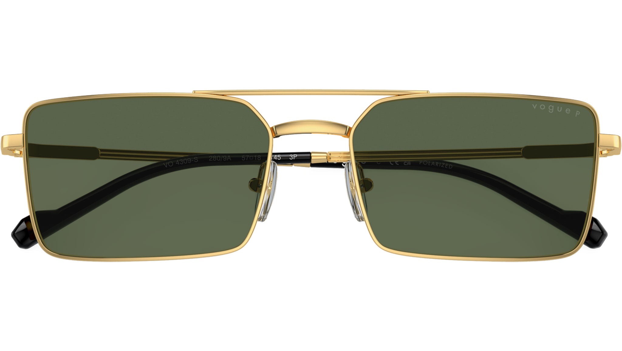 Vogue sunglasses for men model VO4309S 280/9A featuring gold metal frame and dark green polarized base 4 polycarbonate lenses. Adjustable nosepads. Frame line: Man. Brand code: 0VO4309S. Color code: 280/9A. Authorised Vogue Eyewear Online Reseller. Your glasses will come including the original case and accessories and will be covered by 12 month global warranty.
