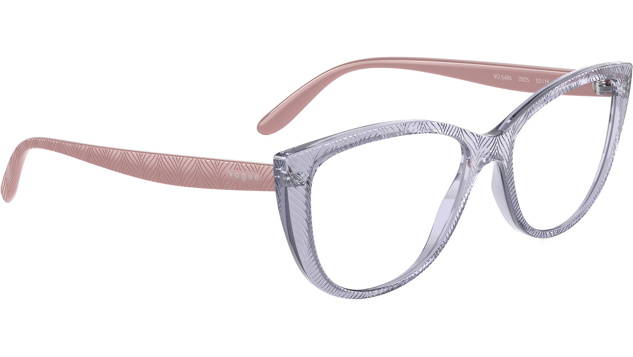 Vogue glasses for women model VO5485 2925 featuring transparent light violet injection frame and base 4 demo lens. High bridge fit. Frame line: In Vogue. Brand code: 0VO5485. Color code: 2925. Authorised Vogue Eyewear Online Reseller. Your glasses will come including the original case and accessories and will be covered by 12 month global warranty.