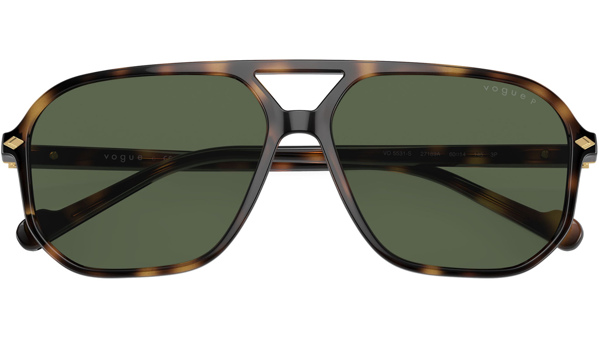 Vogue sunglasses for men model VO5531S 27189A featuring total dark havana nylon frame and dark green polarized base 6 polycarbonate lenses. High bridge fit. Frame line: Man. Brand code: 0VO5531S. Color code: 27189A. Authorised Vogue Eyewear Online Reseller. Your glasses will come including the original case and accessories and will be covered by 12 month global warranty.