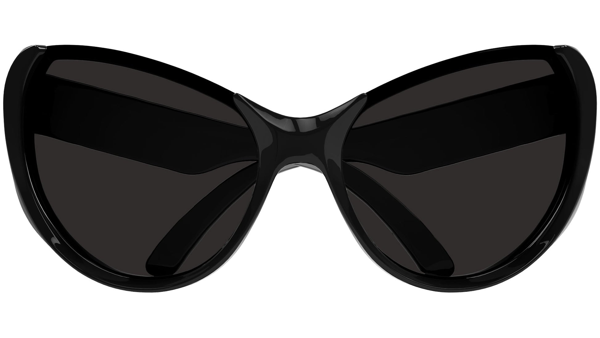 Balenciaga BB0201S 001 sunglasses with shiny black frame and solid grey lens.