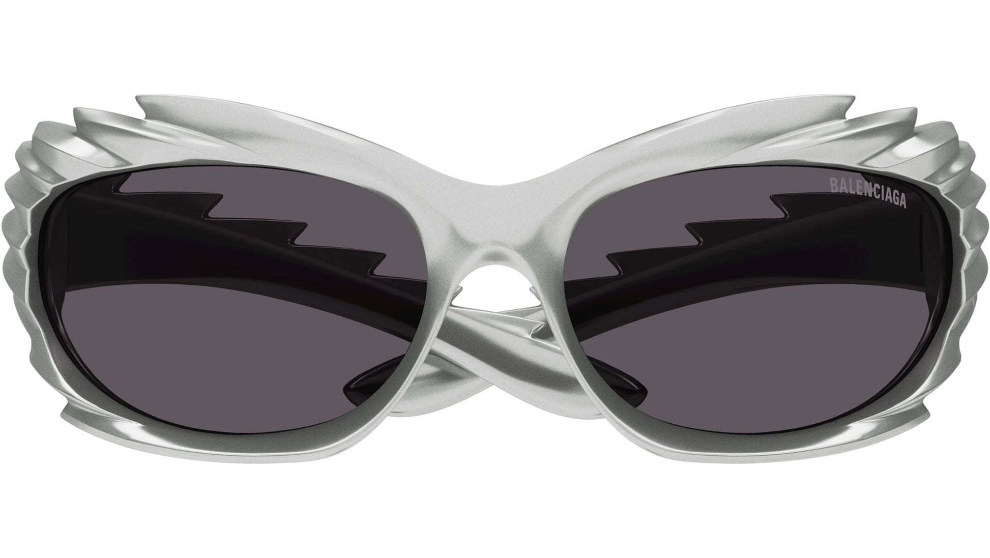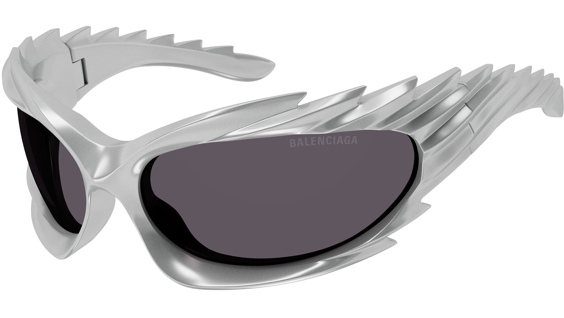 Balenciaga Extreme collection sunglasses model BB0255S 003 featuring shiny metallic silver frame and solid smoke lens.