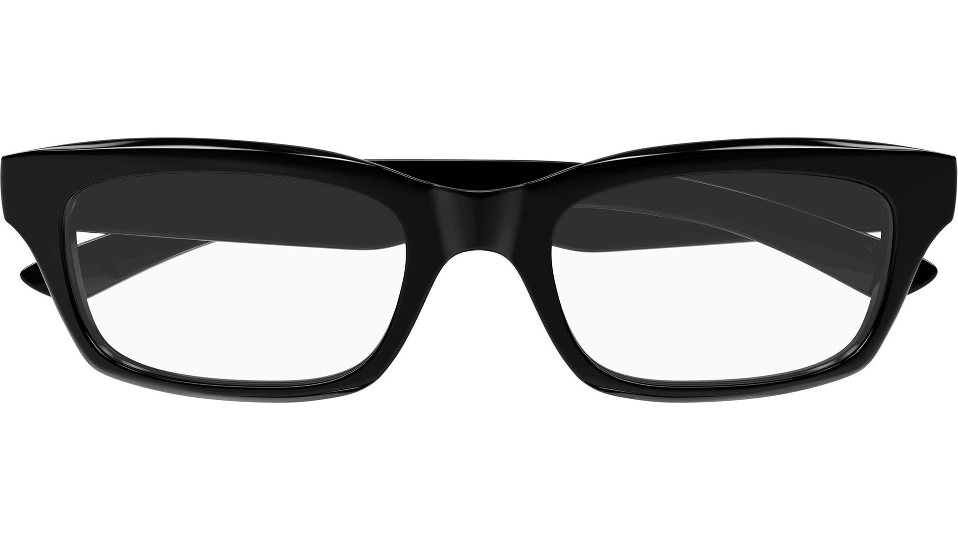 Balenciaga BB0427O 001 glasses for men, featuring shiny solid black rectangular recycled acetate frame and demo lenses. Brand line: Everyday. Style code: BB0427O. Color code: 001. Made in Italy. Authorized Balenciaga online reseller. Your glasses will include the original case and accessories and are covered by a 12-month global warranty.