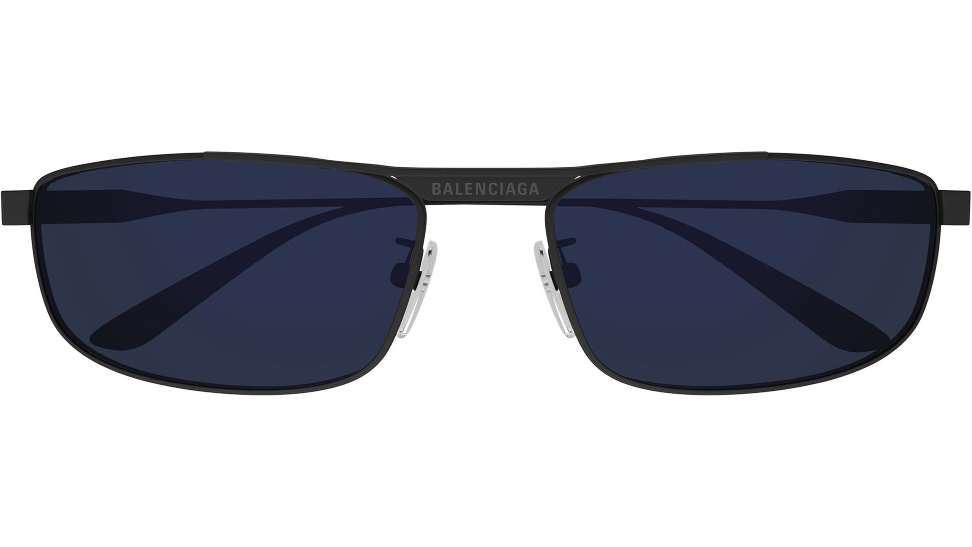 Balenciaga BB0451S 002 sunglasses for men and woman, featuring matte gunmetal rectangular metal frame and solid blue / neon treatment bio nylon lenses. Brand line: Everyday. Style code: BB0451S. Color code: 002. Made in Japan. Authorized Balenciaga online reseller. Your glasses will include the original case and accessories and are covered by a 12-month global warranty.