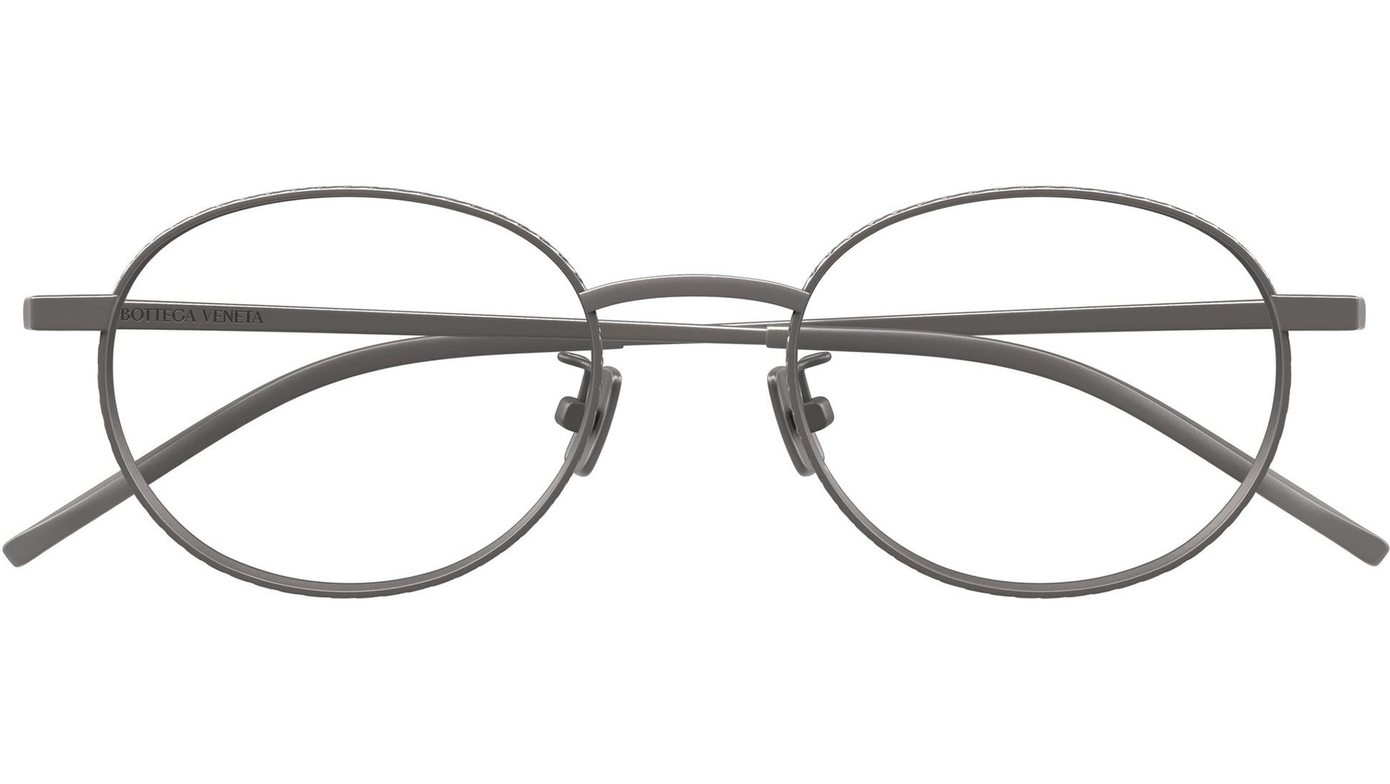 Bottega Veneta BV1426OA 003 glasses for men and woman, featuring semimatte burnished dark ruthenium panthos titanium frame and demo lenses. Brand line: Intrecciato. Style code: BV1426OA. Color code: 003. Made in Japan. Authorized Bottega Veneta online reseller. Your glasses will include the original case and accessories and are covered by a 12-month global warranty.