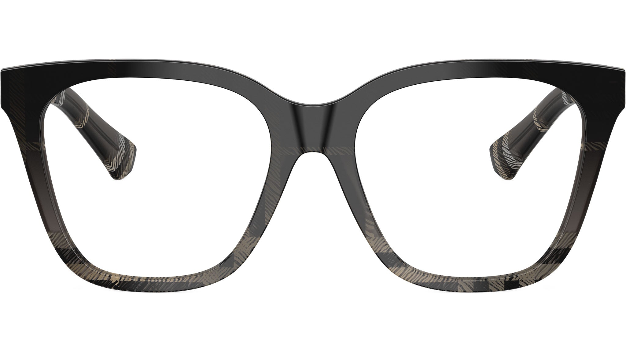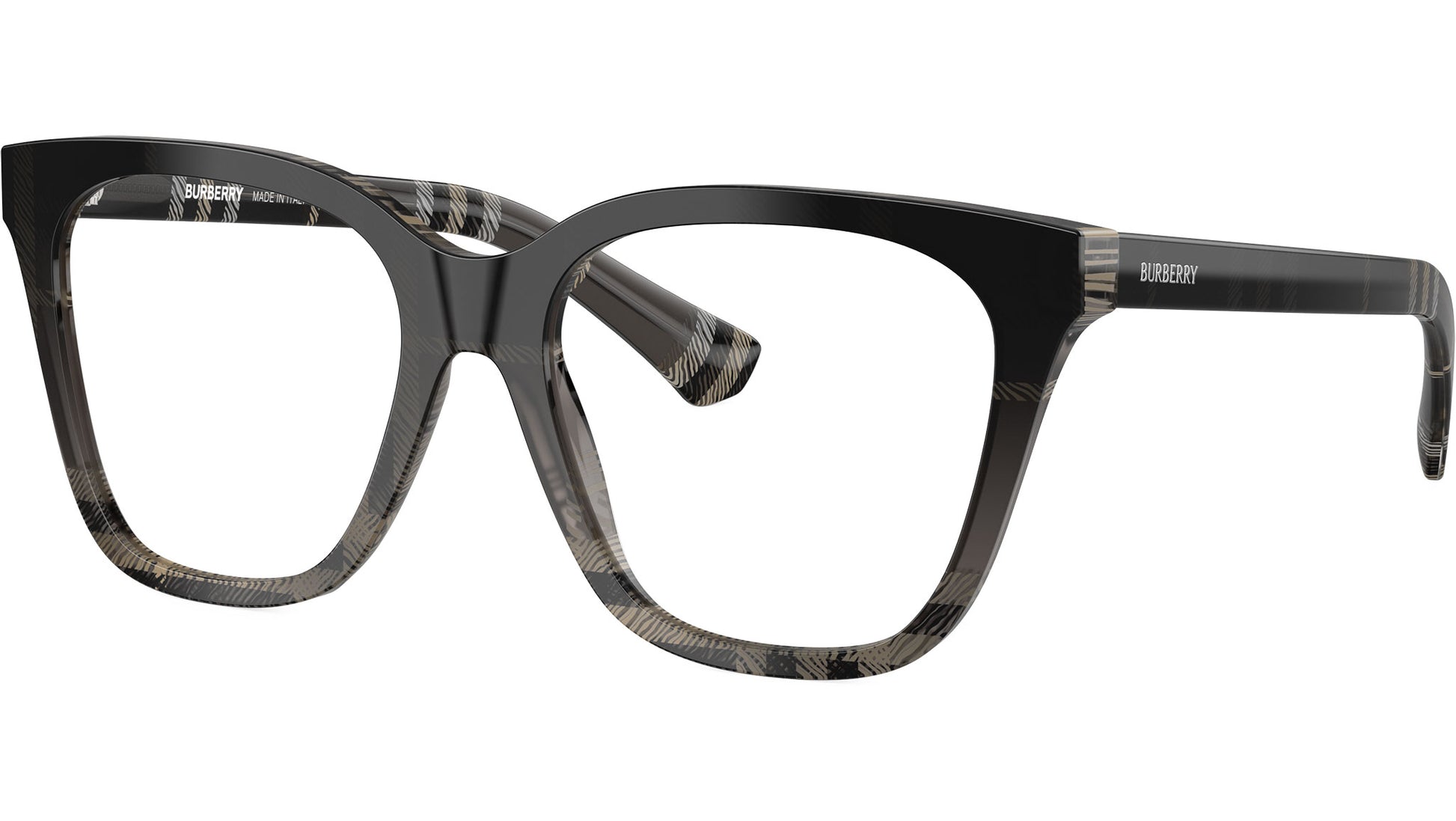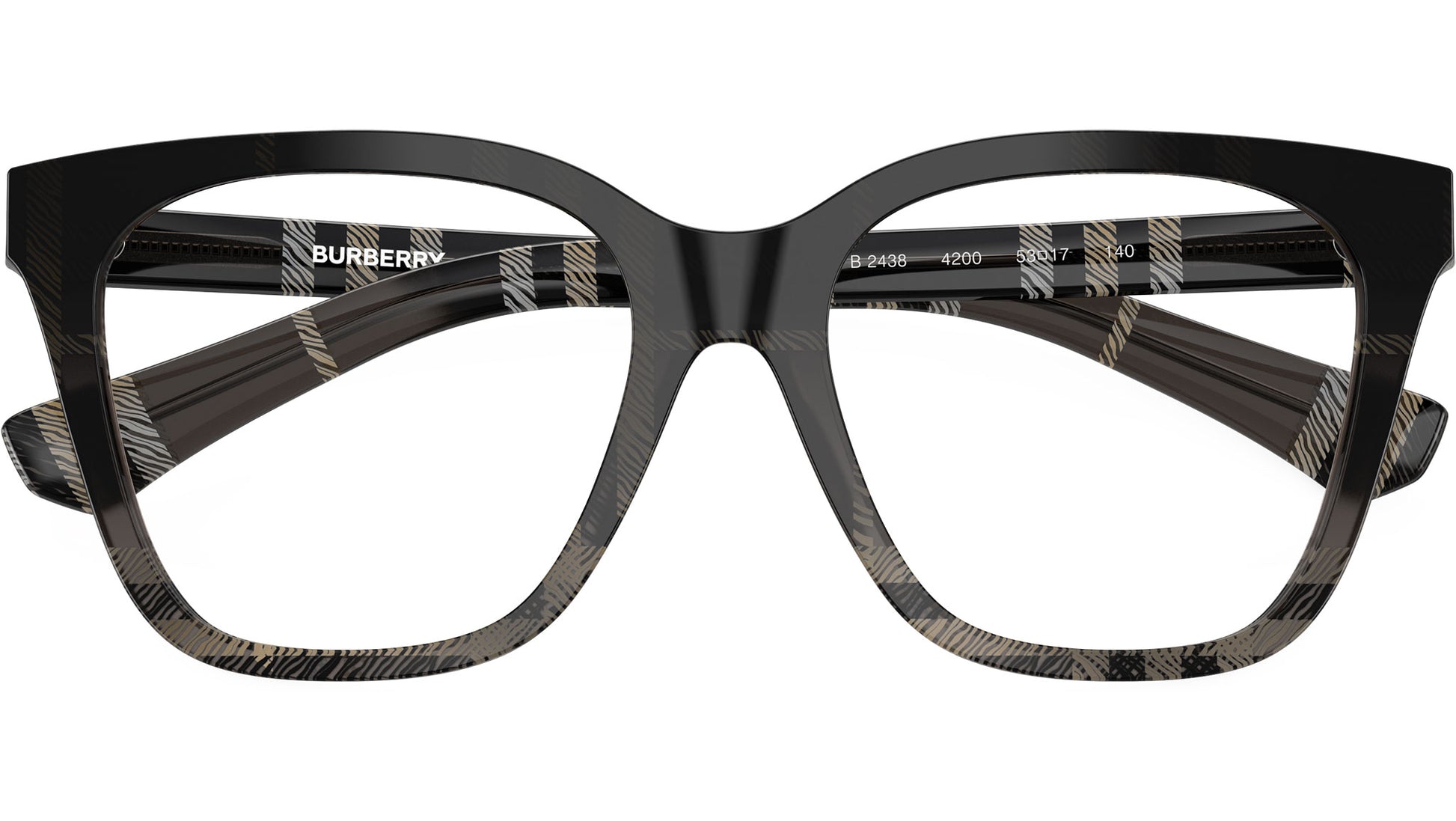 Burberry eyeglasses for women BE2438 4200 featuring grey check full rim acetate frame and demo lenses. High bridge fit. Suggested size: M. Frame line: Gradient Check. Brand code: 0BE2438. Color code: 4200. Authorised Burberry Online Reseller. Your glasses will include the original case and accessories and will be covered by 12 month global warranty.