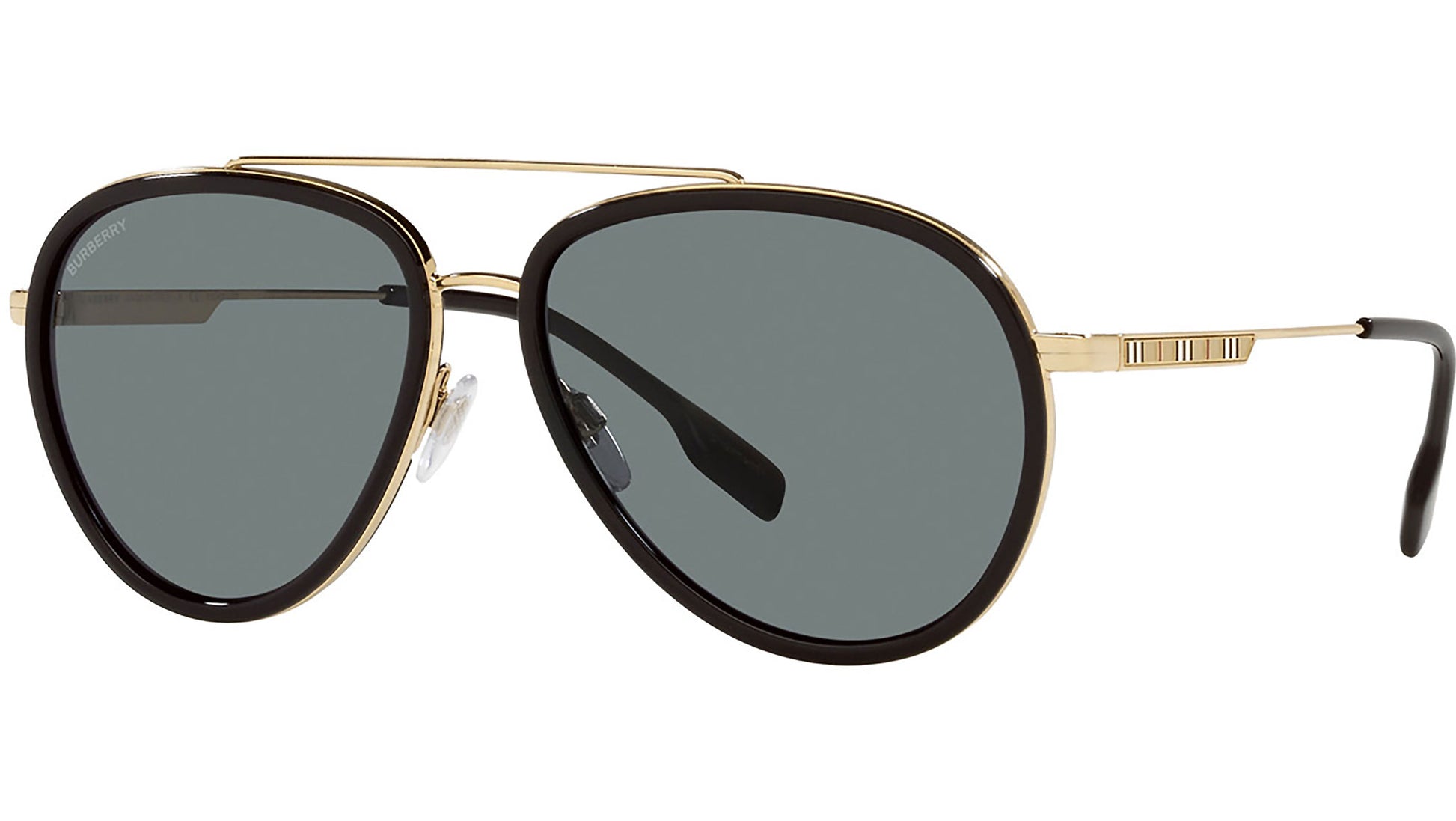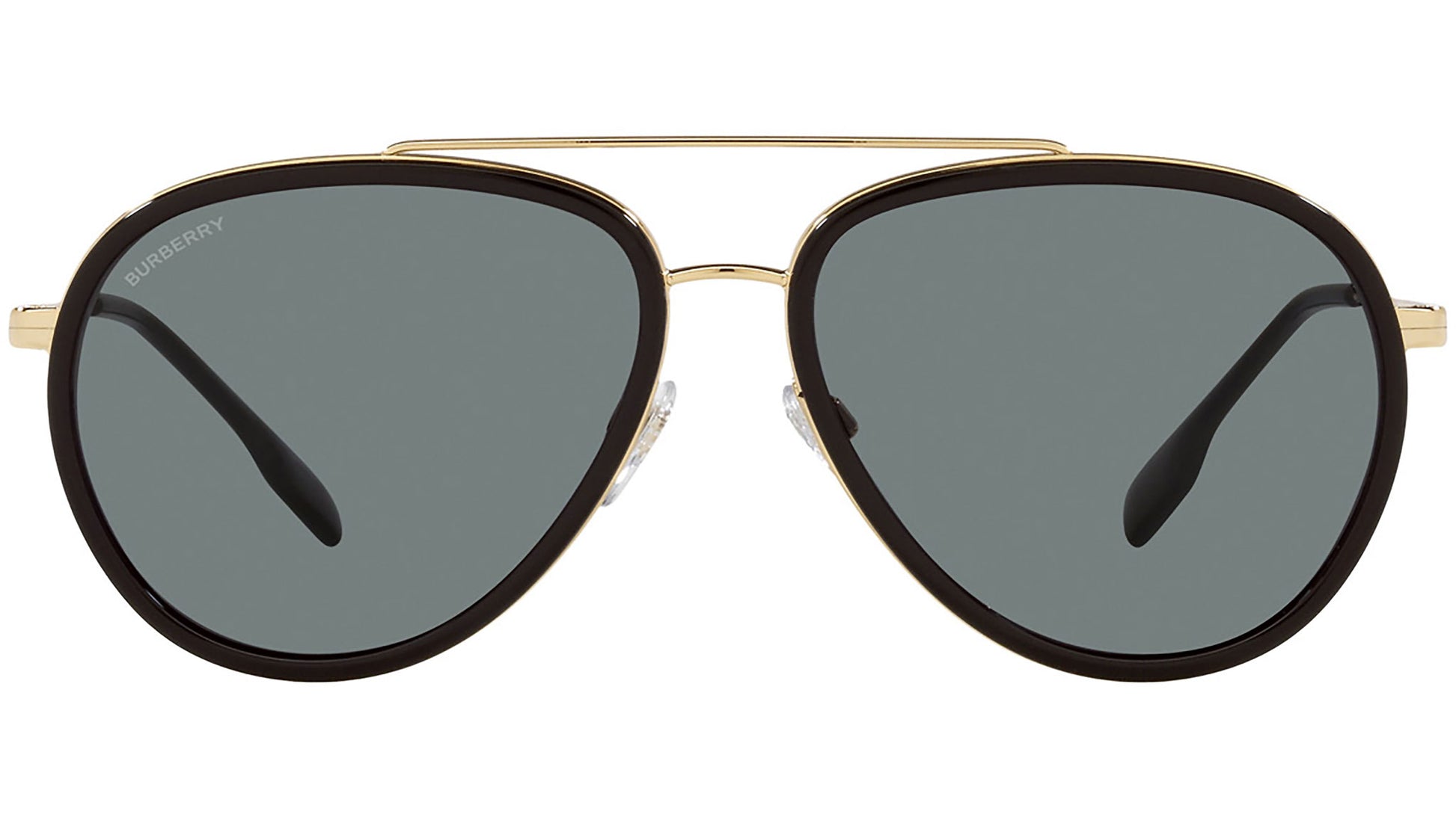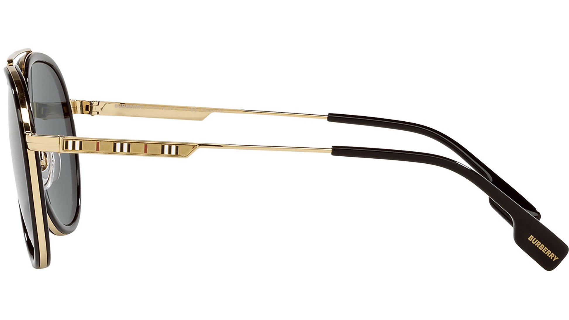 Burberry Oliver BE3125 sunglasses model BE3125 color code 101781 featuring gold full rim metal frame and polycarbonate polar dark grey lenses. Discover the essence of traditional British style with Burberry sunglasses, a captivating eyewear collection. Explore the latest range of designer glasses, sunglasses, and frames for both women and men. This collection offers a blend of classic silhouettes and contemporary frames, catering to diverse preferences. From sleek full-rim to semi-rimless styles, Burberry presents a variety of metal and acetate frames that exude sophistication. Since its establishment in 1856, Burberry has been a global symbol of British luxury, renowned for its rich heritage and deep-rooted passion for the outdoors. Embodying modern British luxury, the brand is celebrated for its distinctive house codes and iconic pieces. Guided by Creative Director Daniel Lee, Burberry continues to redefine the fashion landscape.