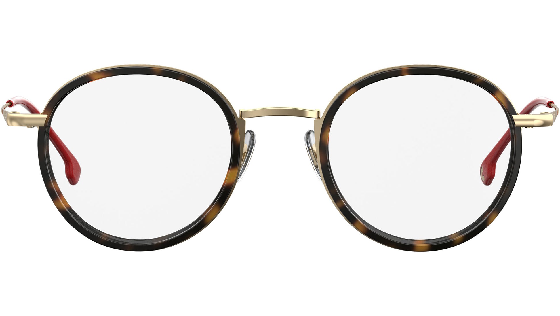 Carrera optical frame model 163/V/F color code 086 Havana. Both contemporary and timeless, casual but still refined, Carrera’s Spring/Summer collection relives the label’s treasured history and offers timeless products to discerning connoisseurs. These distinctive round eyeglasses put a modern twist on vintage styles, bringing Carrera’s best up to date. The discreet profile is sculpted from lightweight metal with black acetate rims and tips for a refined contrast. The slender arms are laser-engraved with Carrera lettering on each side and printed with the instantly recognizable Flag symbol on the left temple, while the discreet 'C' logo inside the left end tip adds another layer of desirability. A considered addition to any accessories repertoire, have them fitted with your preferred prescription or UV-protective lenses. International fit designed with adjustable nose pads and longer temples.