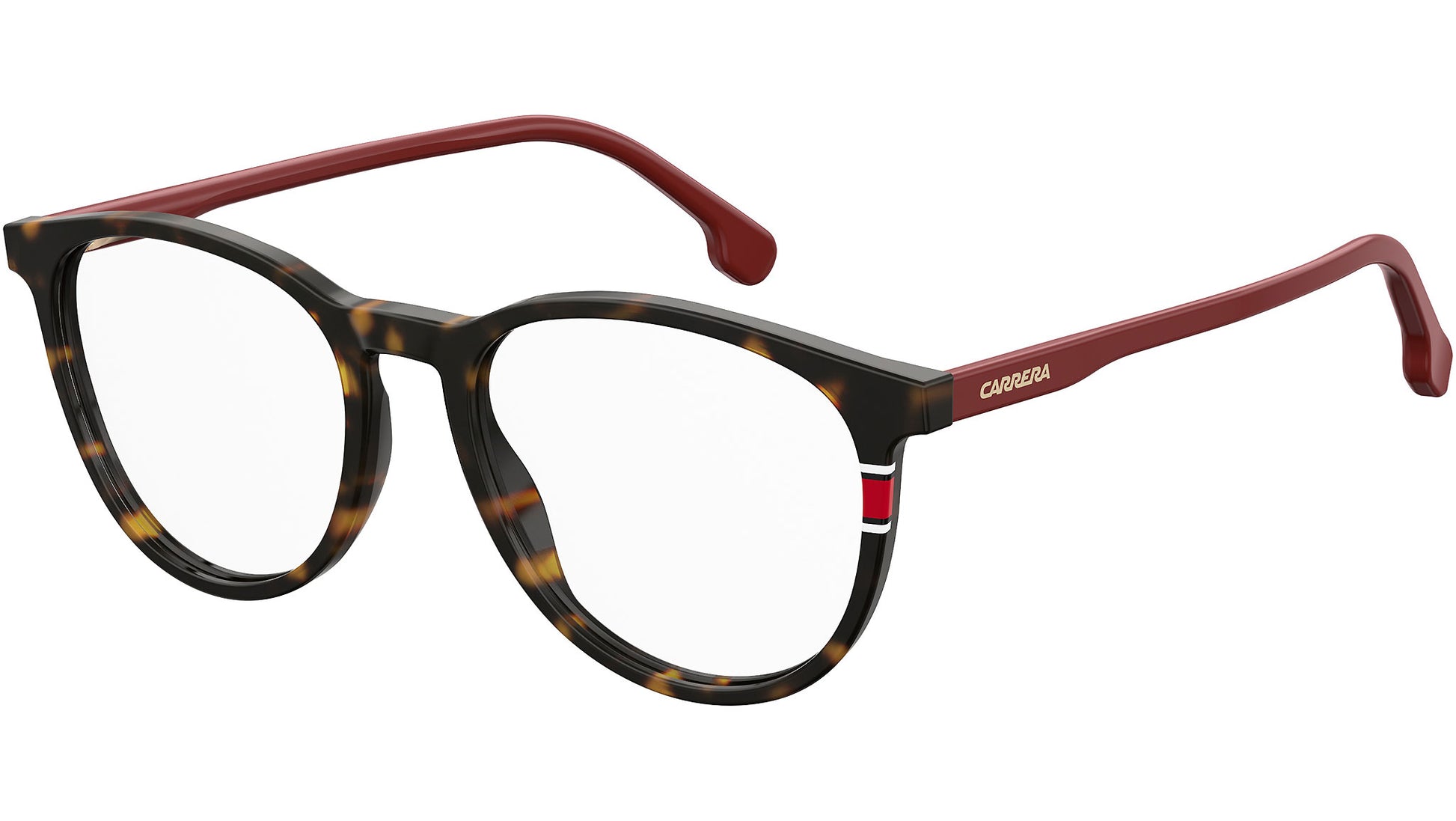 These full-rim acetate glasses draw from the energy and emotion of sport while providing a bold new expression of Carrera’s style. The history and heritage are referenced through the signature red and white striped front. Meanwhile, the full-rim pantos shape, also known as ‘teacup’, infuses the vintage with the modern.