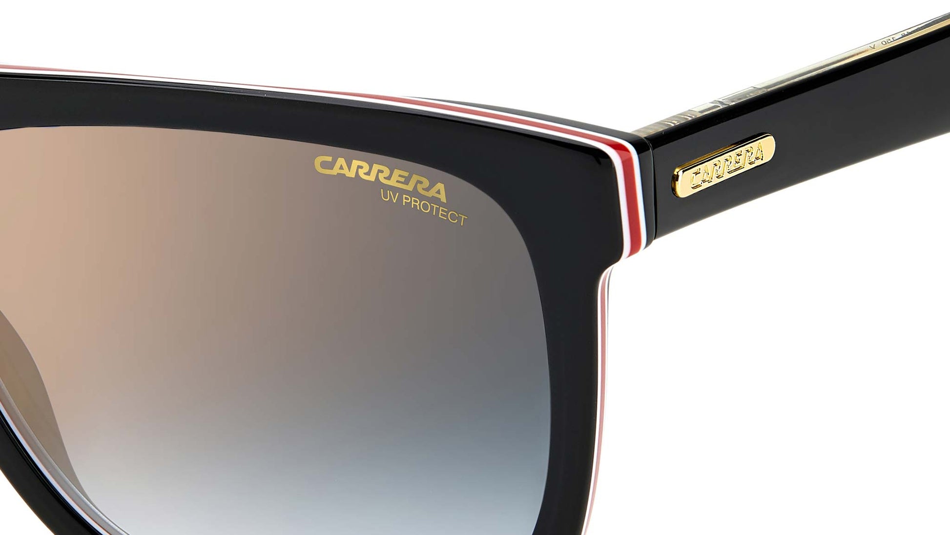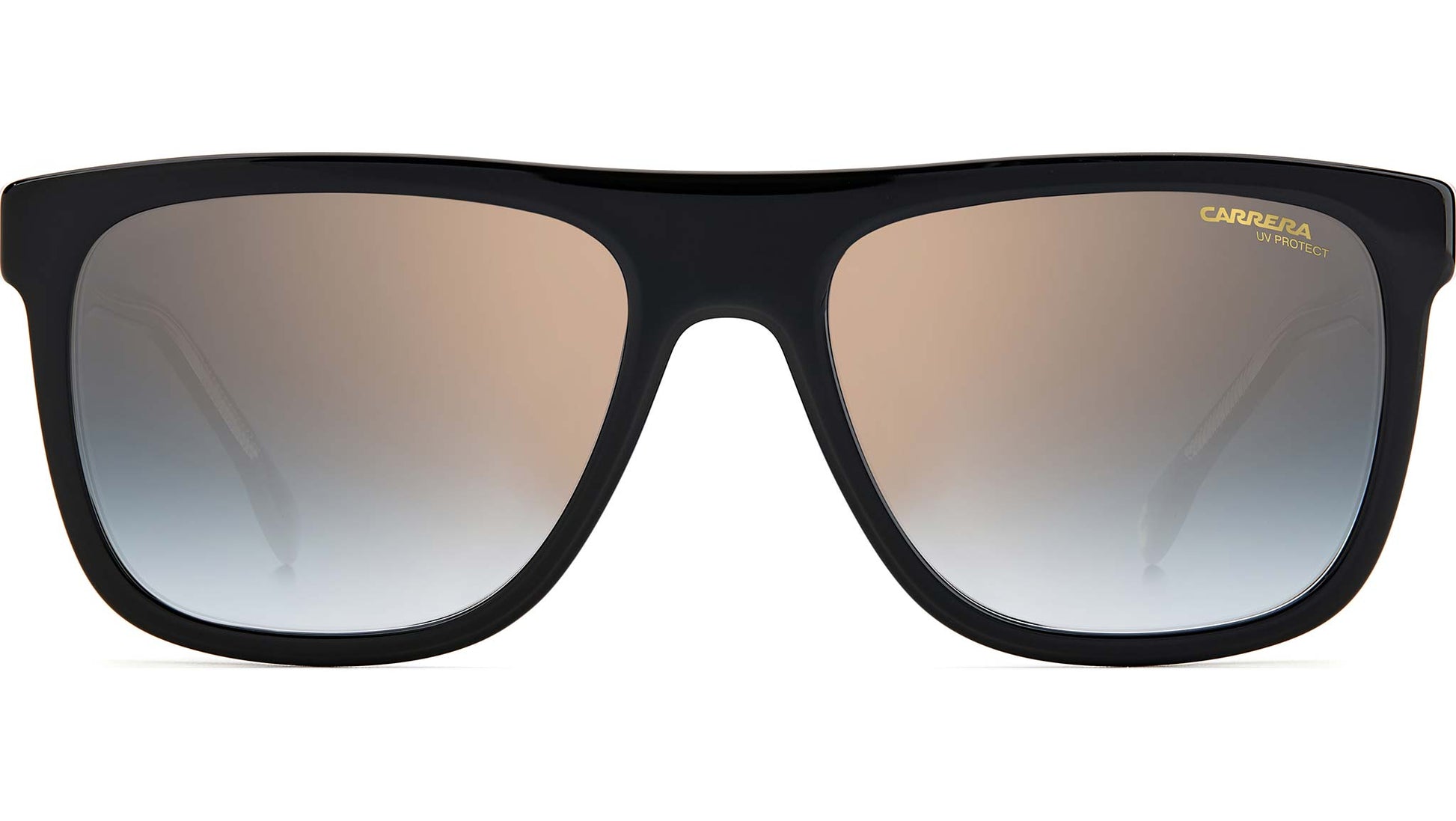 Understated yet undeniably cool - these men’s sunglasses modernize the classic vintage-inspired frames with bold volumes and dynamic detailing. The full-rim design is sculpted from thick acetate in a rectangle-shaped profile and accented with a flat brow bar for a sporty touch. Carrera’s logo on the left lens and the brand’s logo plaque on each temple round off the look with a dose of iconic appeal.