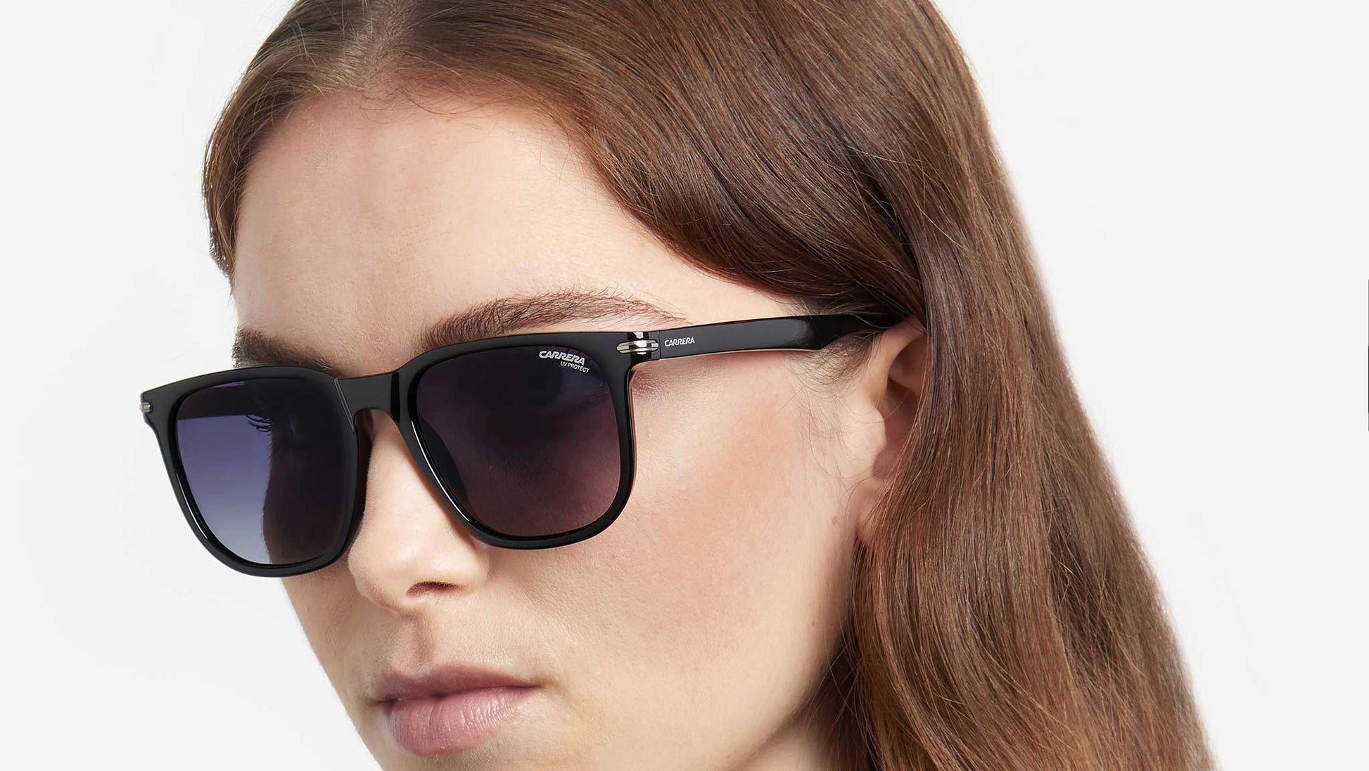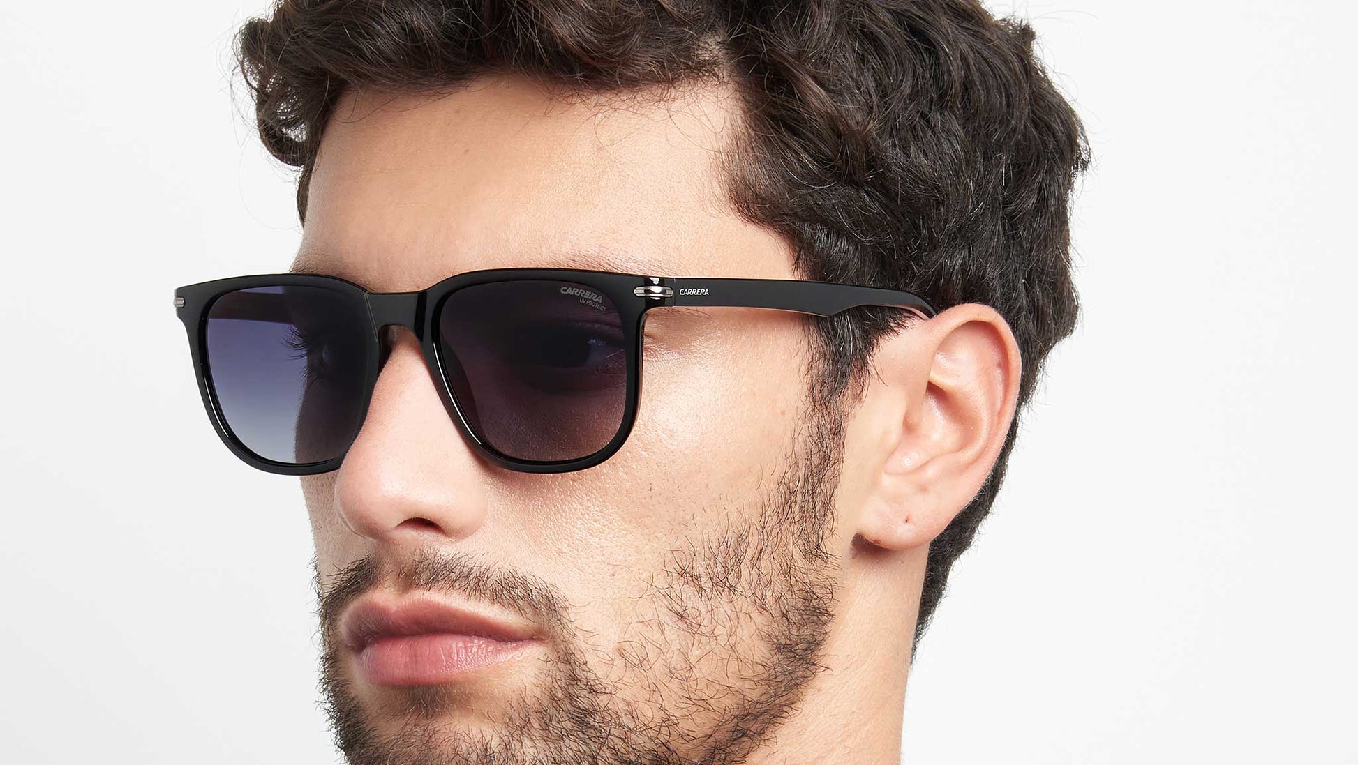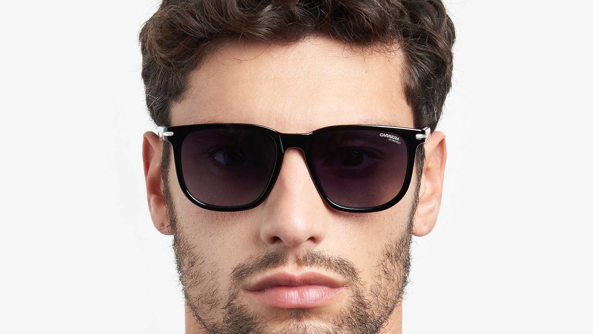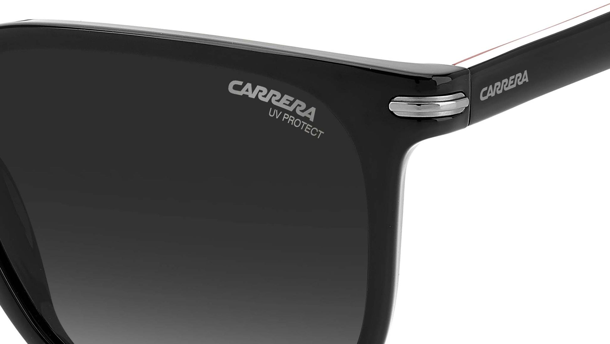 Carrera sunglasses model 300/S color code M4P 9O Striped Black. With these sunglasses, Carrera looks to its heritage while adding a modern twist to its aesthetics. The classic shape of the frames has been given a bold touch thanks to metal details and the iconic fin temples, including one multi-layer option. They even come in a new version with Ultrapolar lenses, for absolute protection from UV rays and high-definition vision, and can be fitted with prescription lenses.