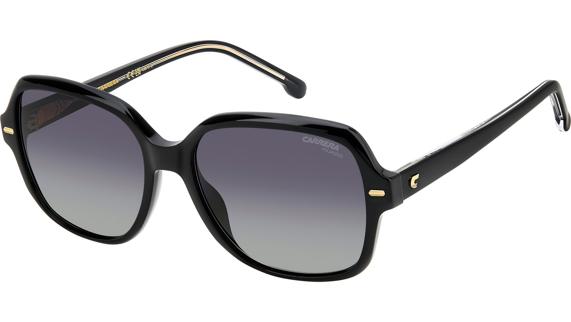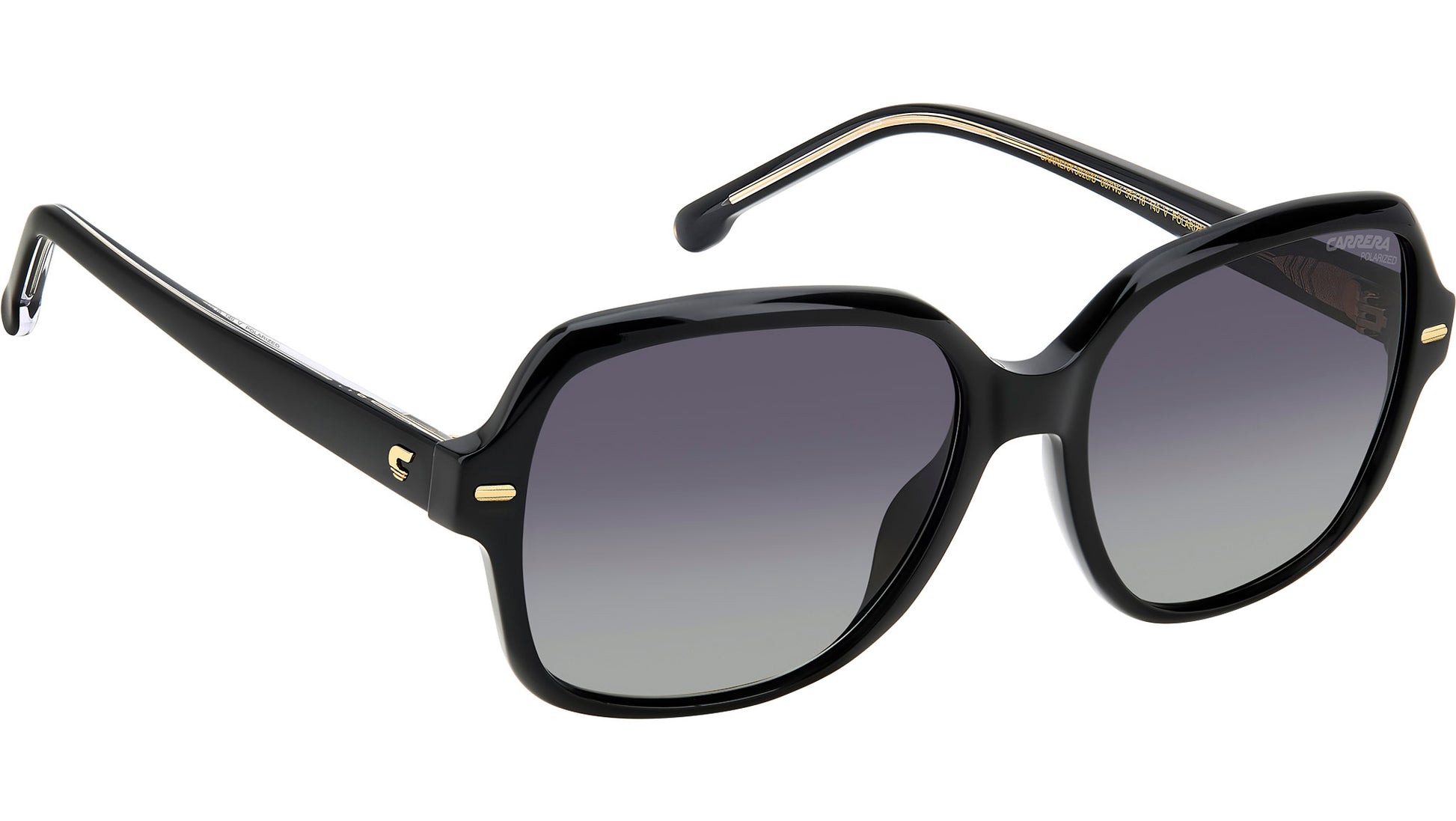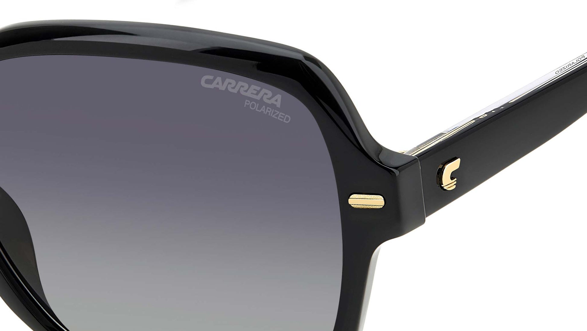 Carrera 3028/S 807 WJ sunglasses for women, featuring black squared acetate frame and grey shaded polarized lenses. These Carrera sunglasses for women are designed to be worn at all times. They add a finishing touch to elegant outfits and bring allure to more casual looks, all thanks to the versatile, evergreen silhouettes, which easily adapt to any personality. Made of acetate, they’re embellished by the metal rivets and an embossed ‘C’ on the temples. The versions with a visible wire core are heavenly, and the version with the multi-layer front is distinct. The frames can hold prescription lenses, and some versions come with polarized lenses. Brand line: Signature. Style code: 206827. Color code: 807 WJ. Authorized Carrera online reseller. Your glasses will include the original case and accessories and are covered by a 12-month global warranty.