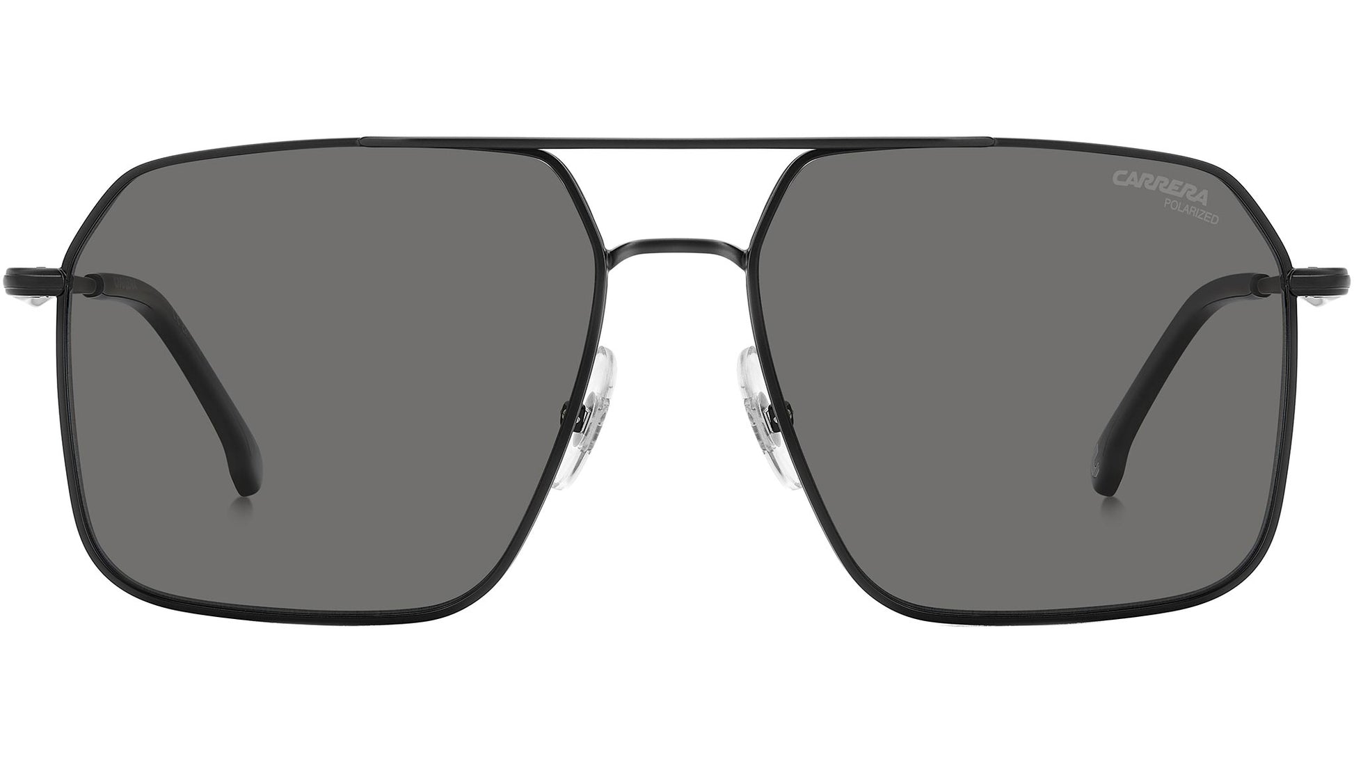Carrera sunglasses model 333/S color code 003 M9 Matte Black. These navigator sunglasses have a double bridge, the signature detail of Carrera. They’re enviable for their lightweight versatility. The stainless steel front can be fitted with prescription lenses. The temples are also in metal, rendered even more comfortable thanks to the acetate end tips. The entire look is defined by slender lines, yet these frames are durable enough to stand up to everyday use. The sun lenses ensure crisp vision, even more highly performing in the polarized and ultra-polar versions.