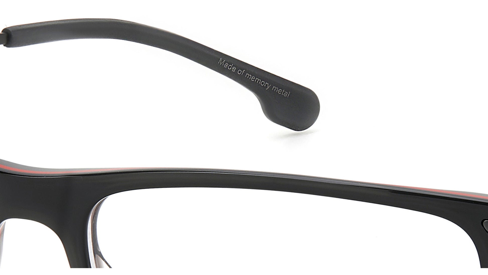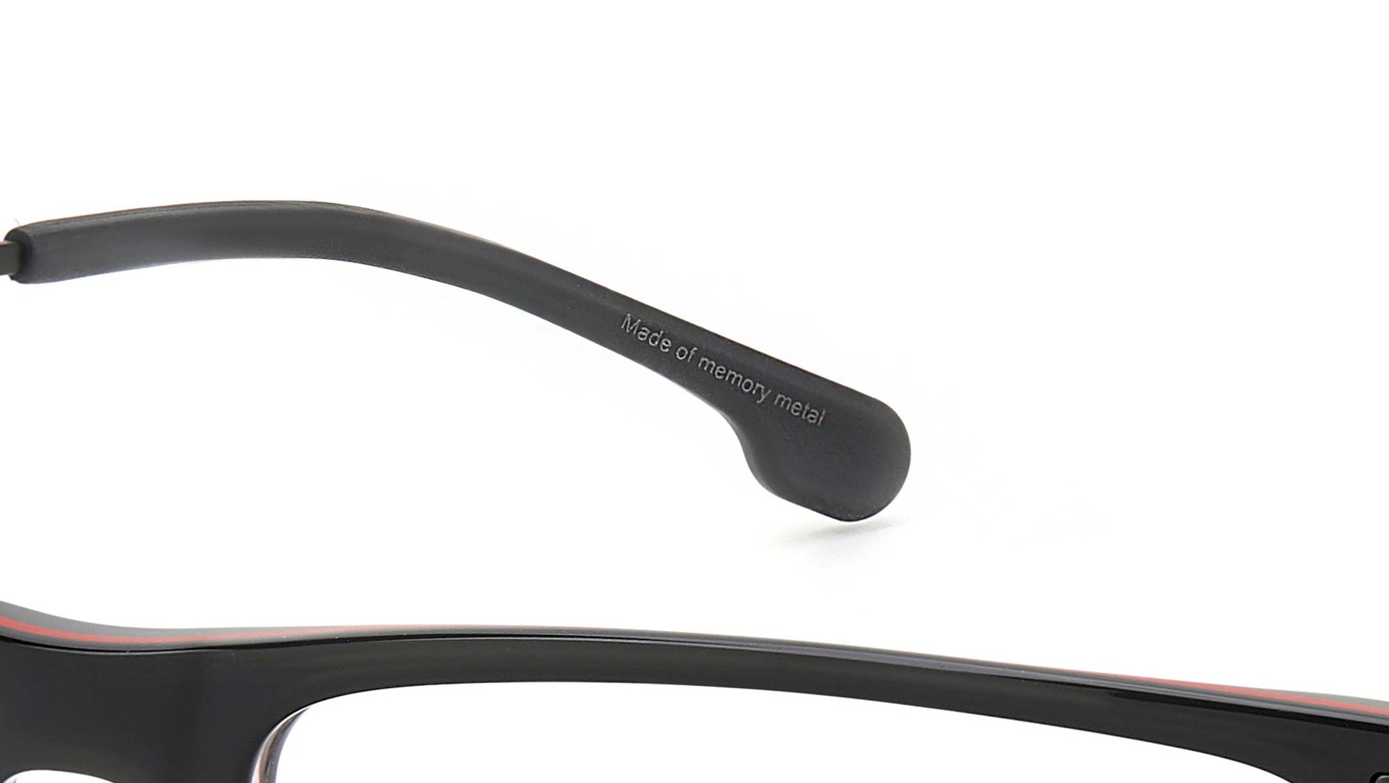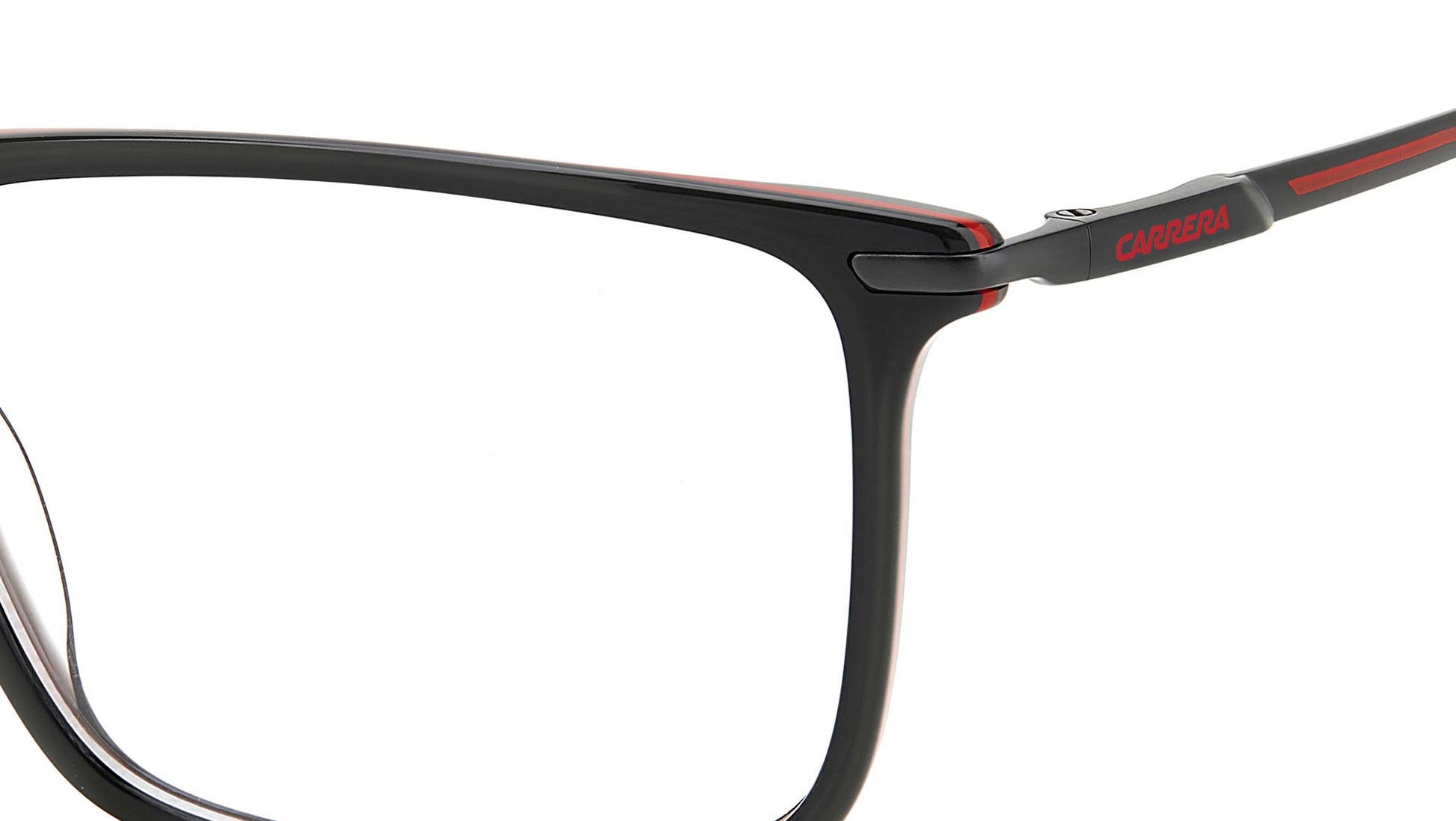 Carrera CARRERA 8905 OIT glasses for men, featuring black red rectangular acetate frame and demo lens lenses. Premium materials and high-quality manufacturing define these Carrera eyeglasses. They're designed for light-as-a-feather comfort, with a slender and compact front in lightweight acetate. Daily use is no problem at all: the Memory Metal temples always return to their original position, even when they're stressed and folded. Everyone can choose their favourite colour palette, each of which is accented by a logo and a tone-on-tone Carrera flag. Brand line: Sport. Style code: 108127. Color code: OIT. Authorized Carrera online reseller. Your glasses will include the original case and accessories and are covered by a 12-month global warranty.