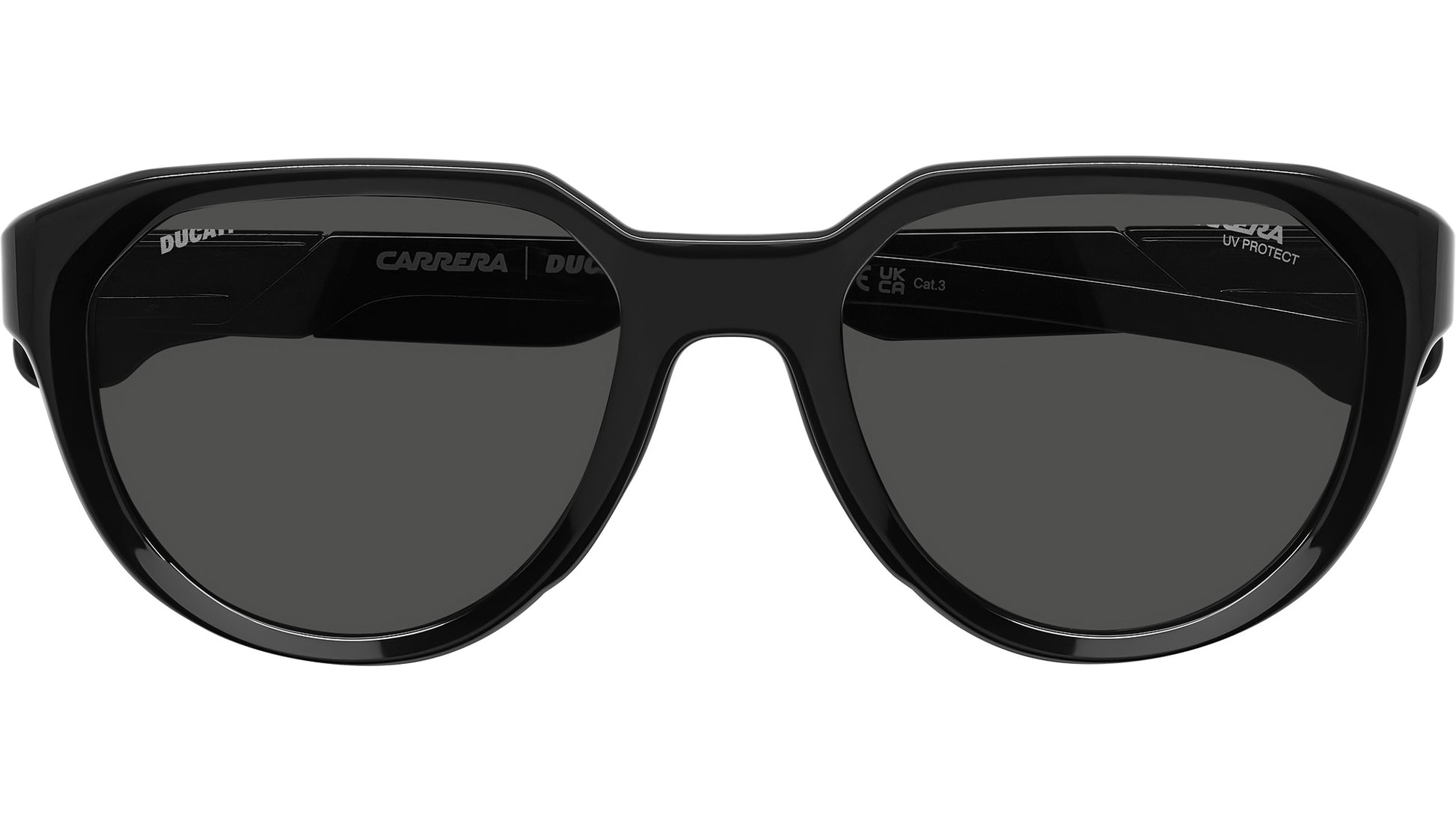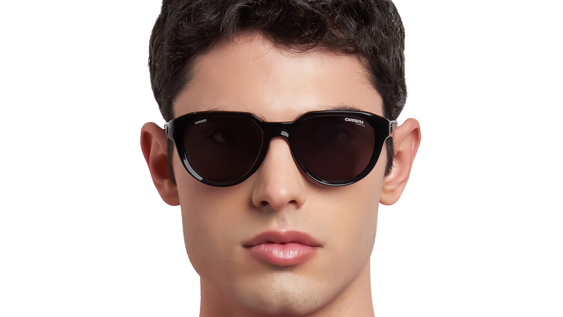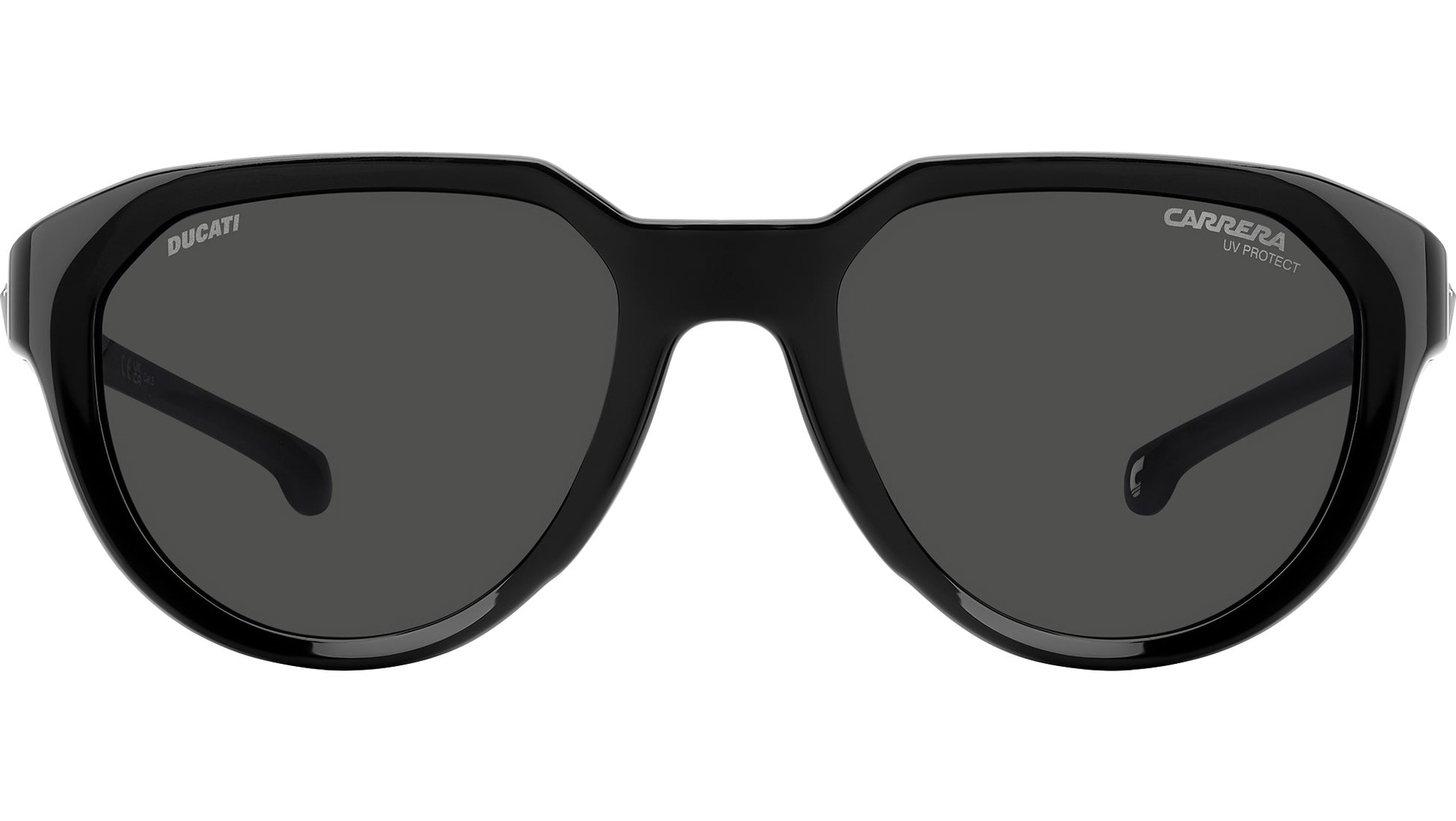 Carrera CARDUC 050/S 807 IR sunglasses for men, featuring black round nylon frame and grey lenses. Champions of motorcycle racing, champions of style: these Carrera | Ducati sunglasses unite performance and aesthetics. Their inspiration comes from the racing paddock – and it shows: a multifaceted geometric front and bold temples with a metal insert, logo and linear grooves, also in contrast options. And if that weren’t enough, the mirrored version is even more daring. Brand line: Paddock. Style code: 207875. Color code: 807 IR. Authorized Carrera online reseller. Your glasses will include the original case and accessories and are covered by a 12-month global warranty.