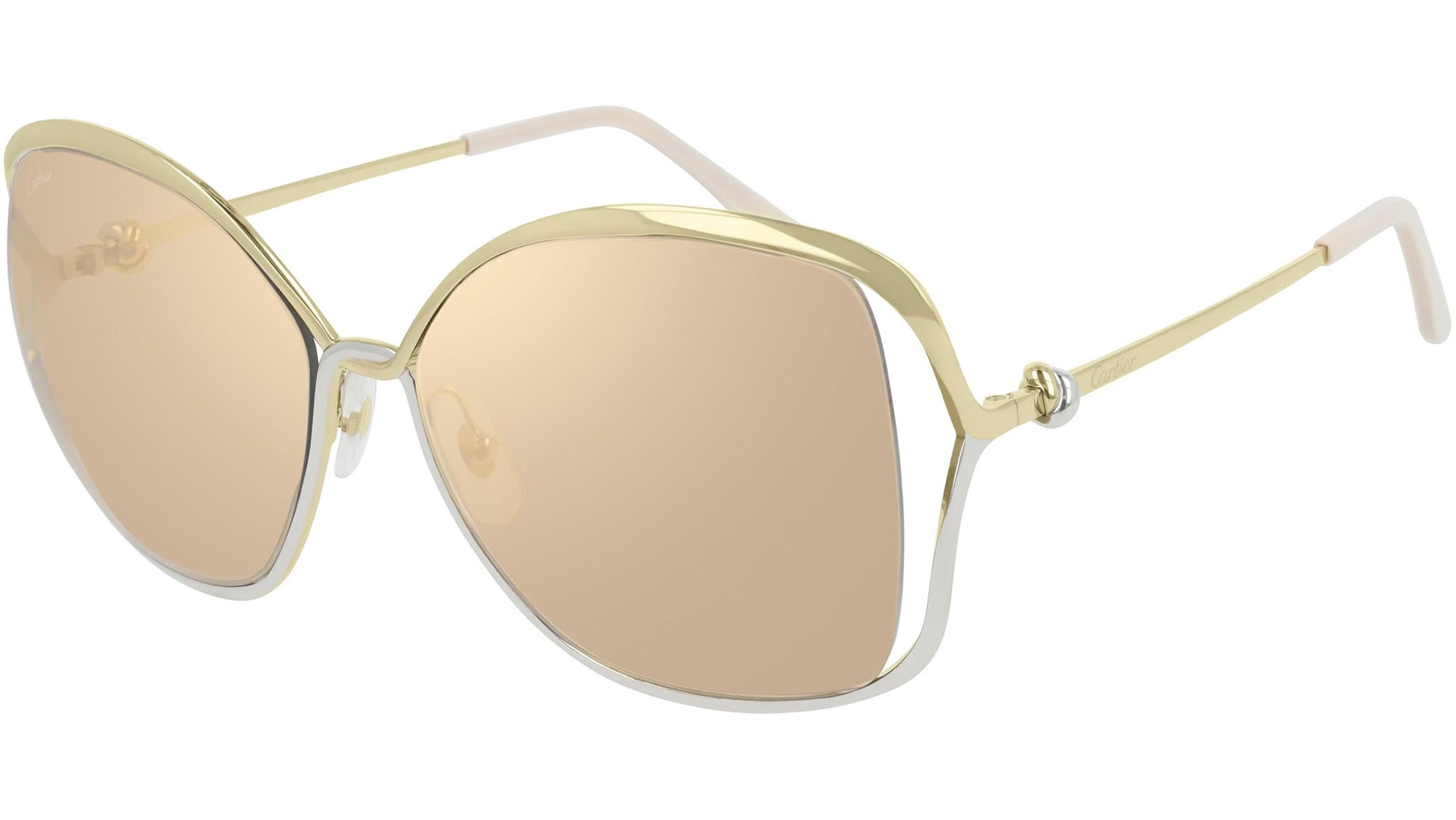 Cartier CT0225S 002 sunglasses with smooth golden frame and brown lens.