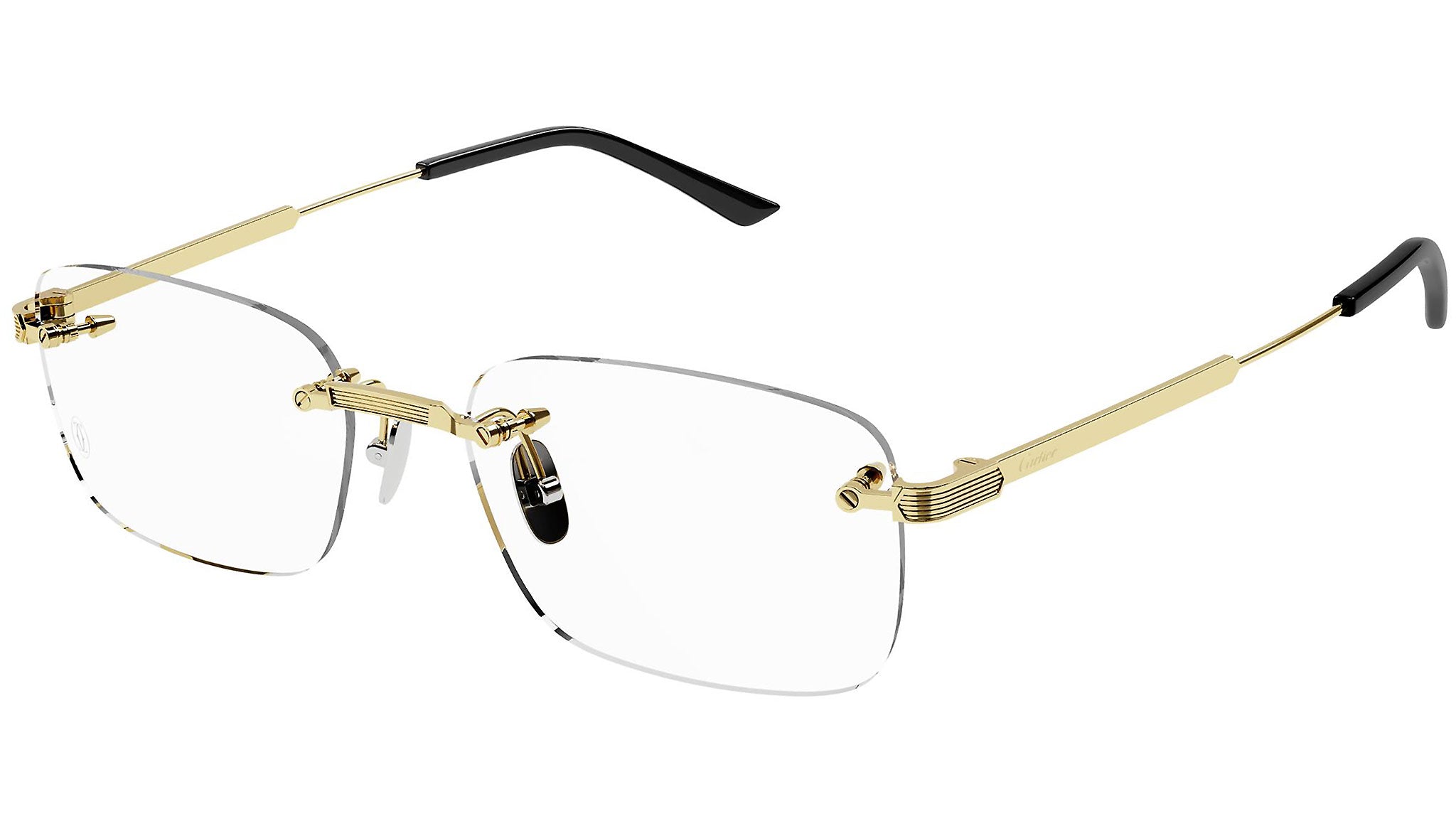 Cartier Core Range optical collection model 0349O 001 featuring smooth golden finish frame and gold temple.