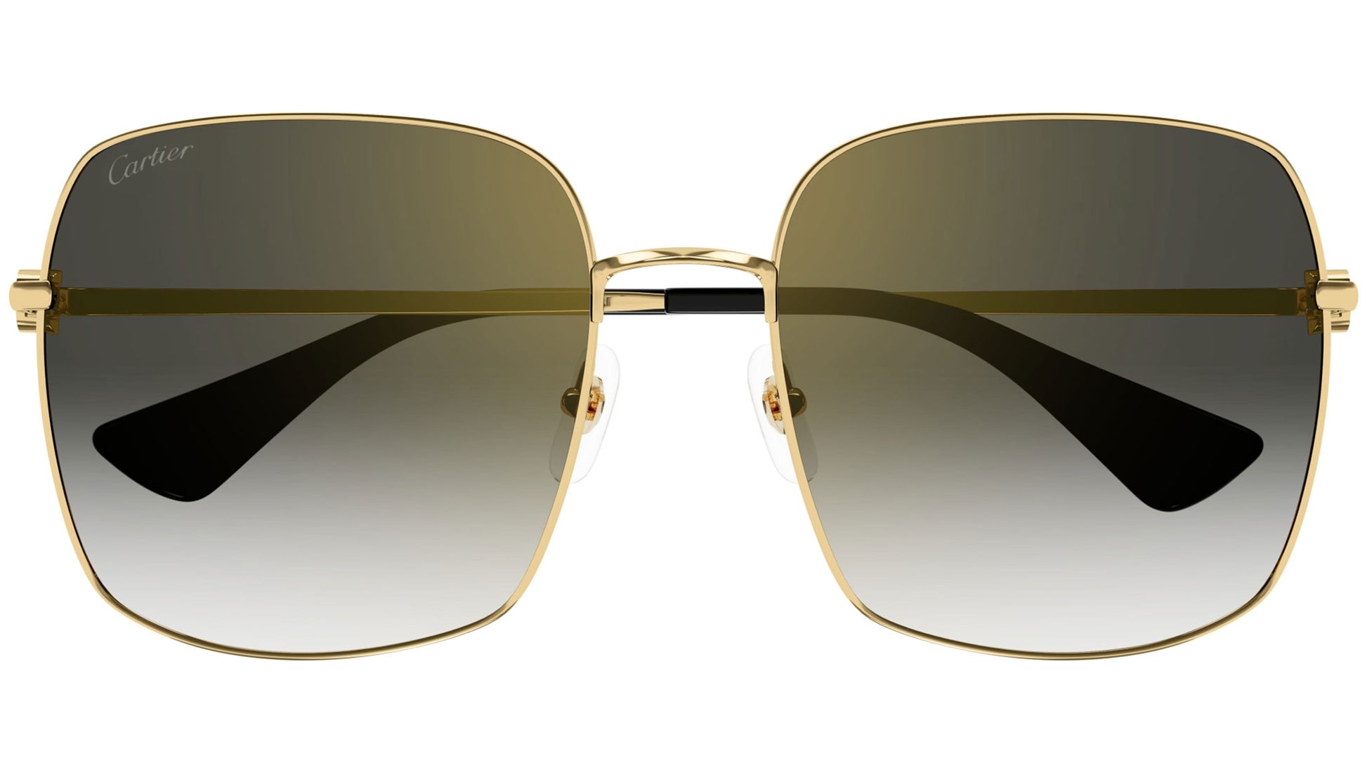 Cartier Core Range sunglasses collection model CT0401S 001 featuring smooth golden finish frame and graded grey with a golden flash lens.