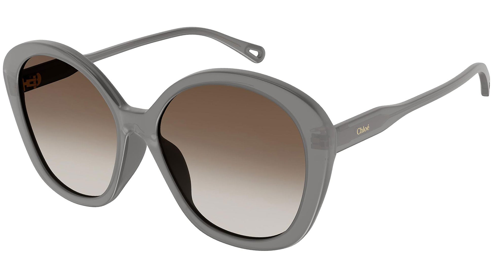 Chloé 0081S 001 sunglasses with shiny opal grey frame and gradient brown lens.