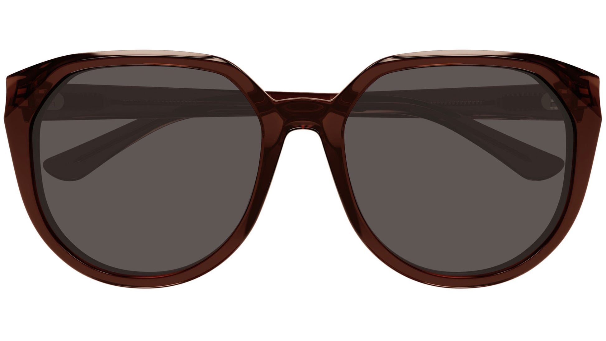 Chloé CH0291SK 002 sunglasses for women, featuring shiny transparent dark brown rectangular recycled acetate frame and solid brown bio nylon lenses. Brand line: Chloé. Style code: CH0291SK. Color code: 002. Made in Italy. Authorized Chloé online reseller. Your glasses will include the original case and accessories and are covered by a 12-month global warranty.