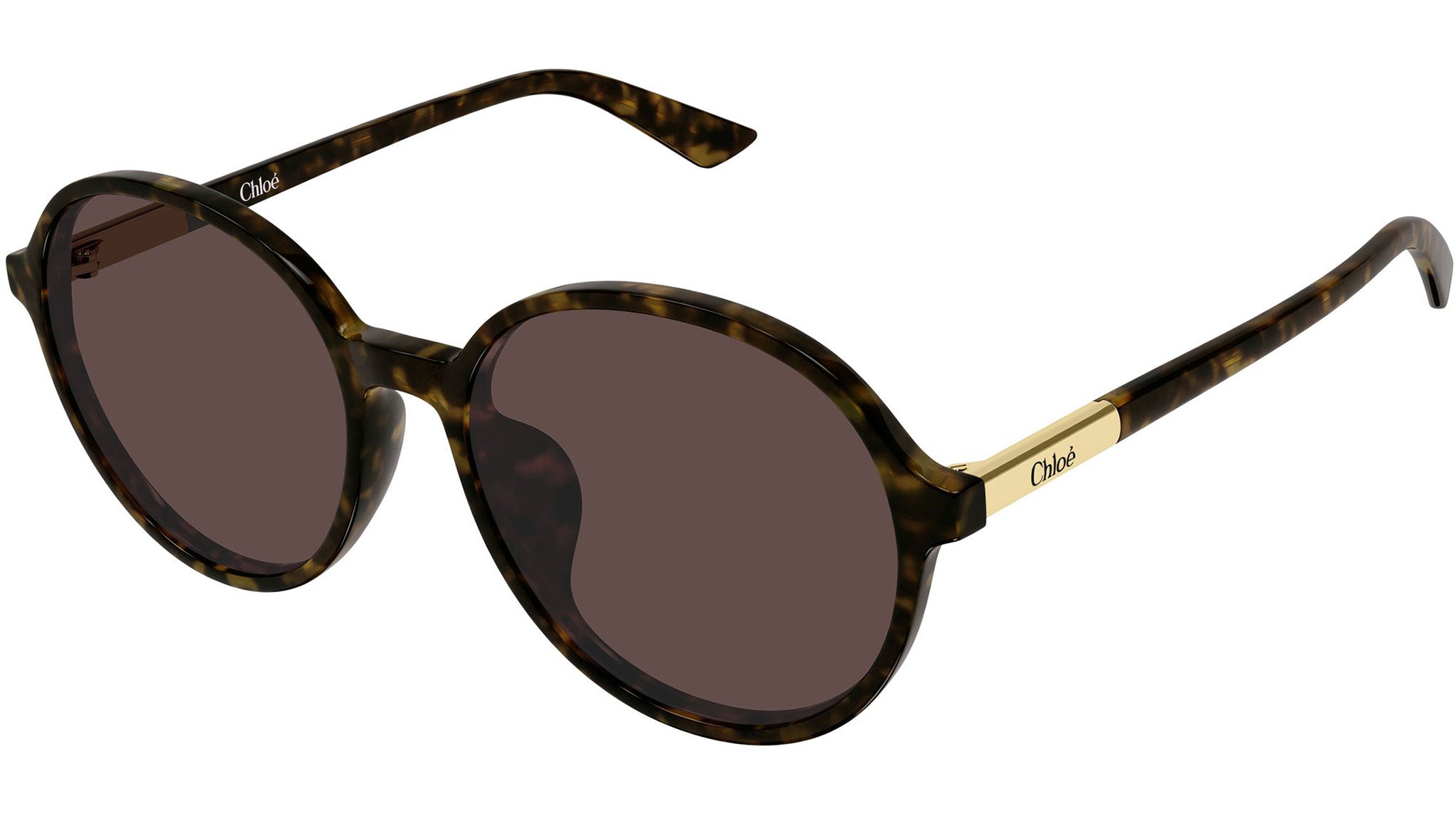 Chloé CH0365SK 002 sunglasses for women, featuring shiny dark havana panthos recycled acetate frame and solid brown bio nylon lenses. Brand line: Chloé. Style code: CH0365SK. Color code: 002. Made in Italy. Authorized Chloé Eyewear online reseller. Your glasses will include the original case and accessories and are covered by a 12-month global warranty.