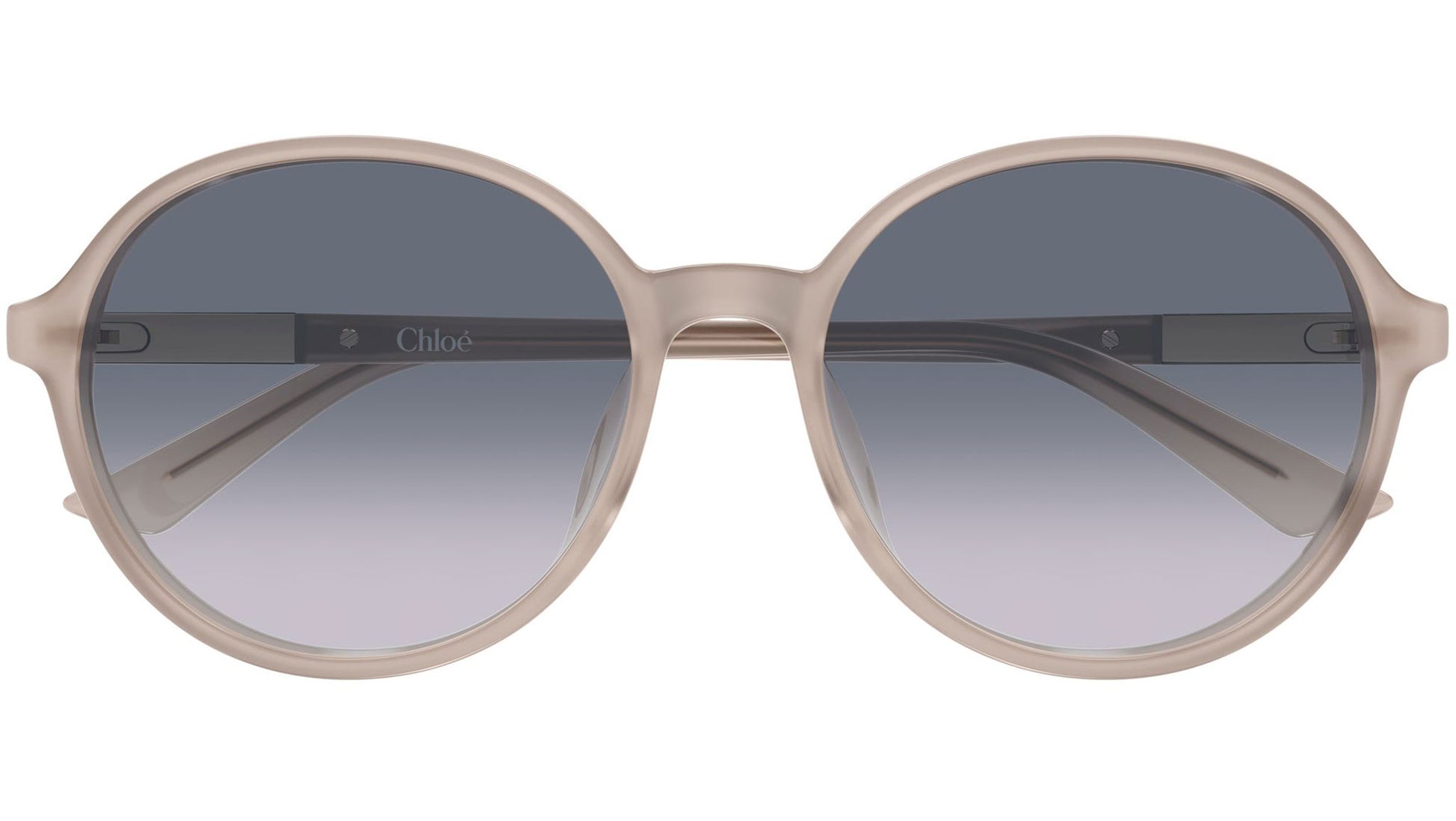 Chloé CH0365SK 005 sunglasses for women, featuring shiny milky beige panthos recycled acetate frame and double gradient grey to rose bio nylon lenses. Brand line: Chloé. Style code: CH0365SK. Color code: 005. Made in Italy. Authorized Chloé Eyewear online reseller. Your glasses will include the original case and accessories and are covered by a 12-month global warranty.